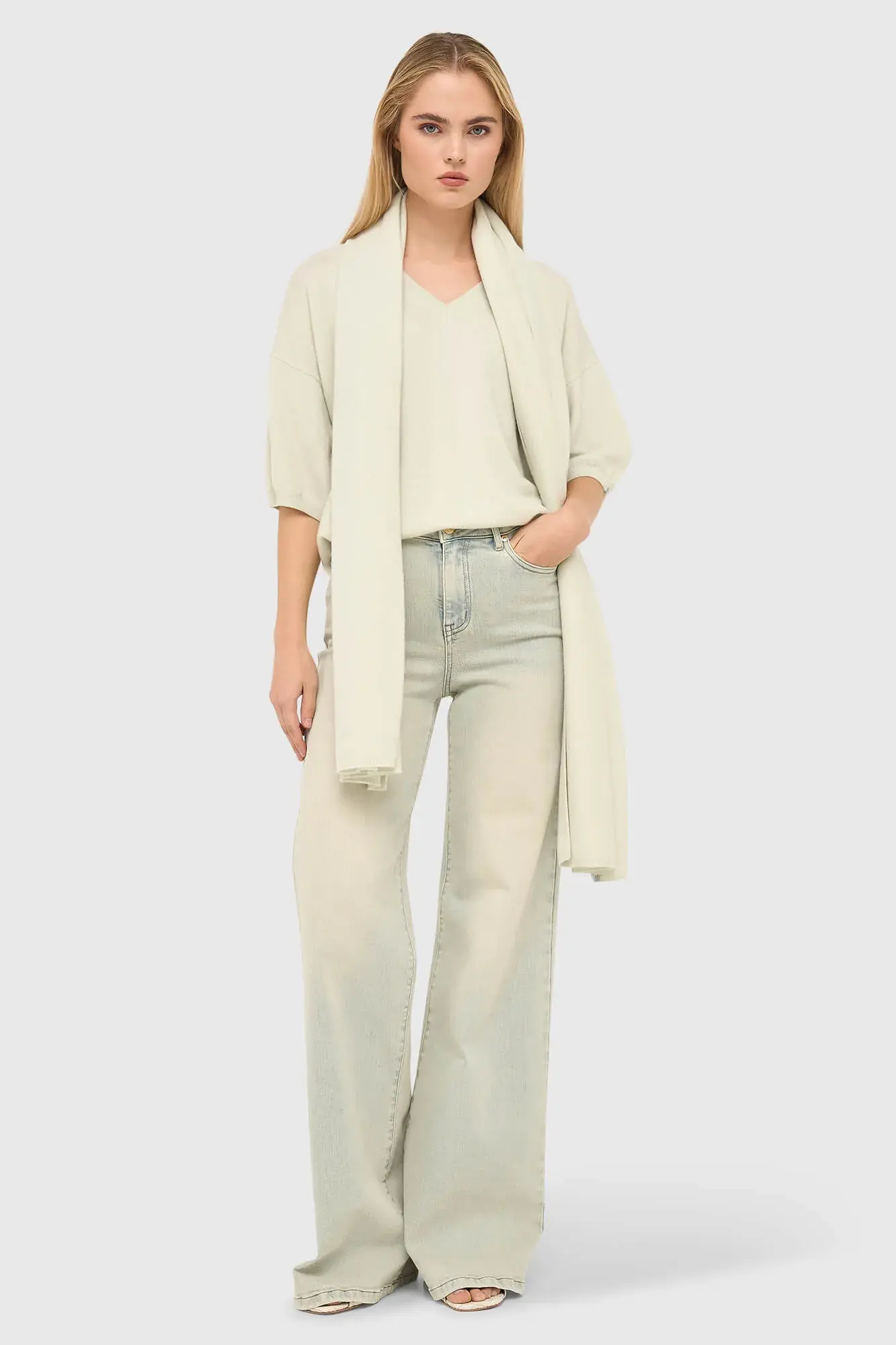 Combineer deze sjaal met een van onze jassen voor een luxe winterlook of draag hem over een van onze zachte truien om extra warmte toe te voegen. Voor een moderne, vrouwelijke combinatie past de sjaal ook prachtig bij onze blazers of een elegante keuze uit de essentials.