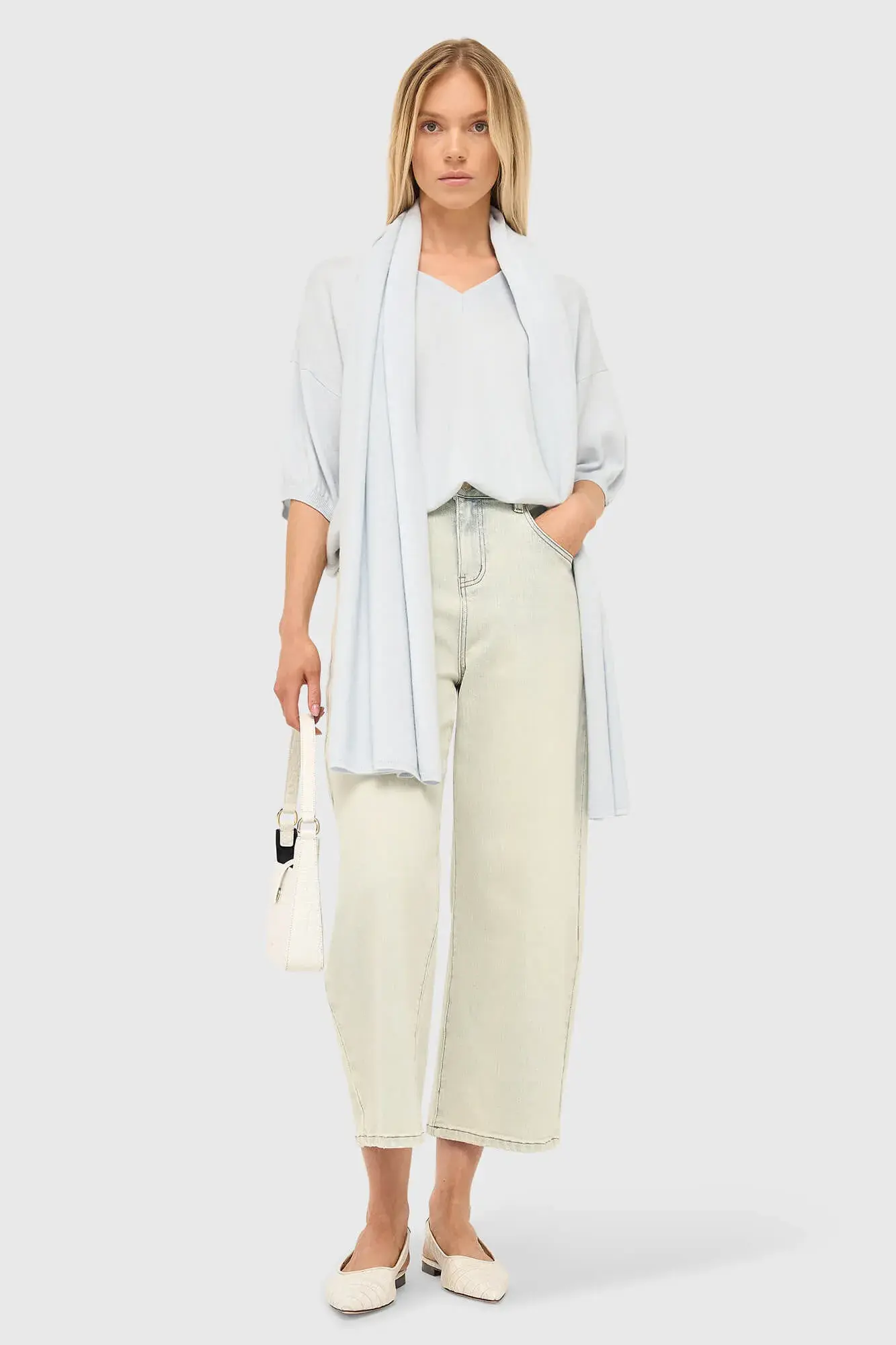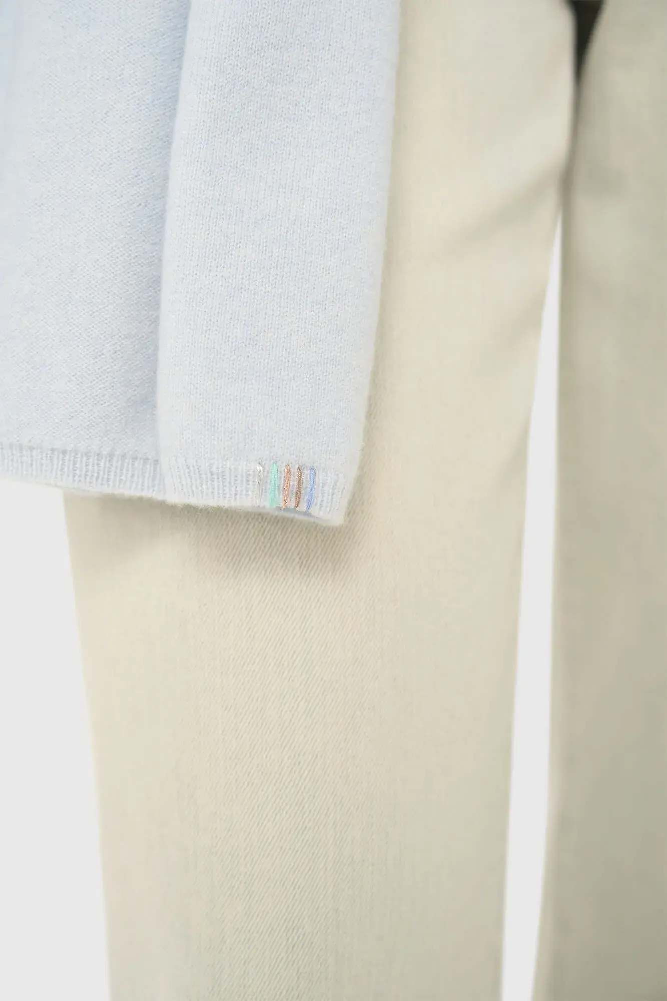 De zachte touch van de wol cashmere blend zorgt ervoor dat de sjaal heerlijk aanvoelt op de huid. De combinatie van deze natuurlijke vezels maakt het ontwerp ademend en behaaglijk, perfect voor koudere dagen of om een outfit subtiel meer diepte te geven. De knitwear afwerking sluit naadloos aan bij de hoogwaardige breiwerken uit de collectie en biedt een tijdloze basis die je seizoen na seizoen blijft dragen. De lichtblauwe kleur is veelzijdig en laat zich makkelijk combineren met neutralen of ton sur ton tinten.