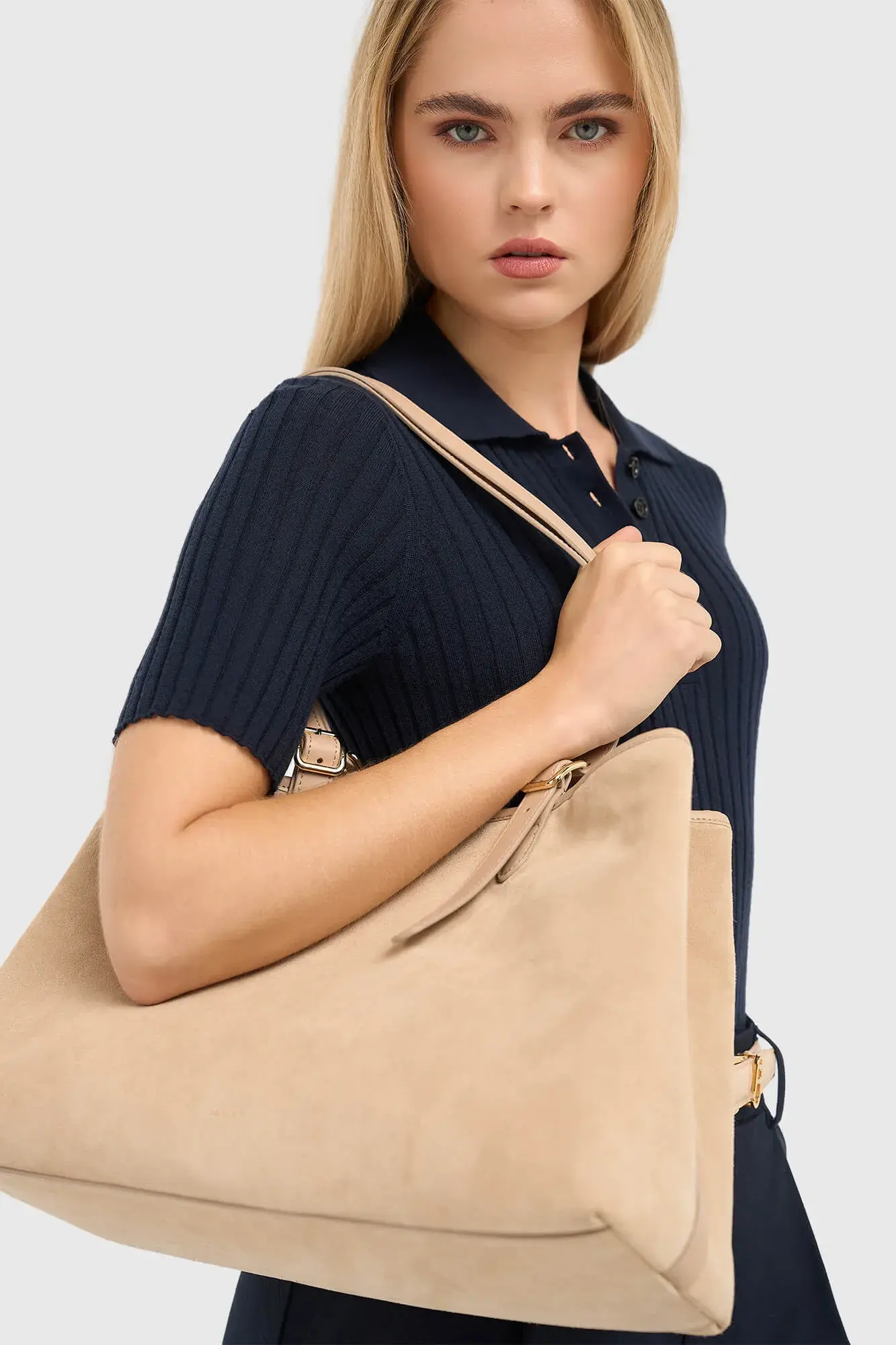 Suede Leren Dames Handtas Shopper Harper Beige