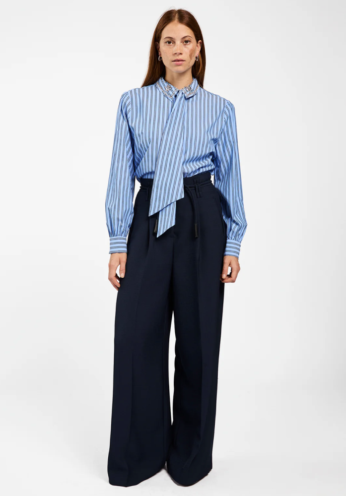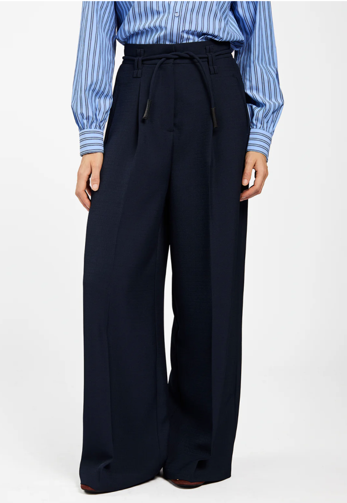 De Hailey broek is een verfijnde combinatie van comfort en stijl. Dit hoog model heeft een rechte pasvorm en een subtiele plooi aan de bovenkant, wat zorgt voor een flatterend silhouet. De riemlussen en het bijpassende ceintuur geven de broek een speelse en toch nette uitstraling. Combineer met blouse Fenne.