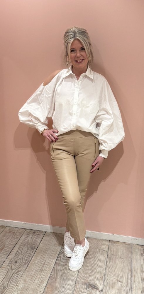 De combinatie van clean design en gouden ritssluitingen geeft deze broek een moderne, vrouwelijke look.
