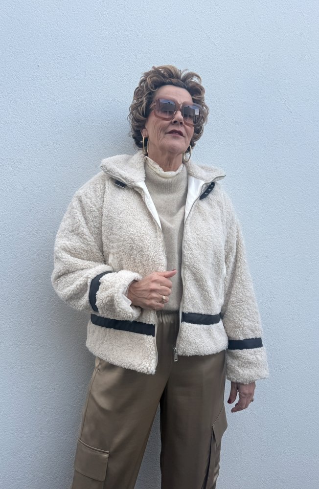 De combinatie van de fluffy structuur en de strakke accenten maakt dit jack modern, stoer én comfortabel. Perfect om je outfit een speelse twist te geven terwijl je heerlijk warm blijft.