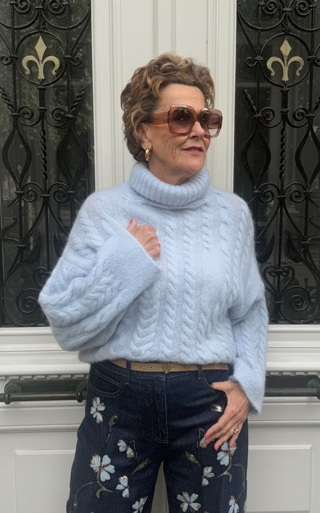 Alysi coltrui met kabels en wijde mouw BLAUW/ WIT