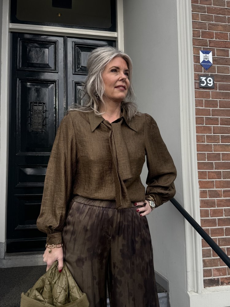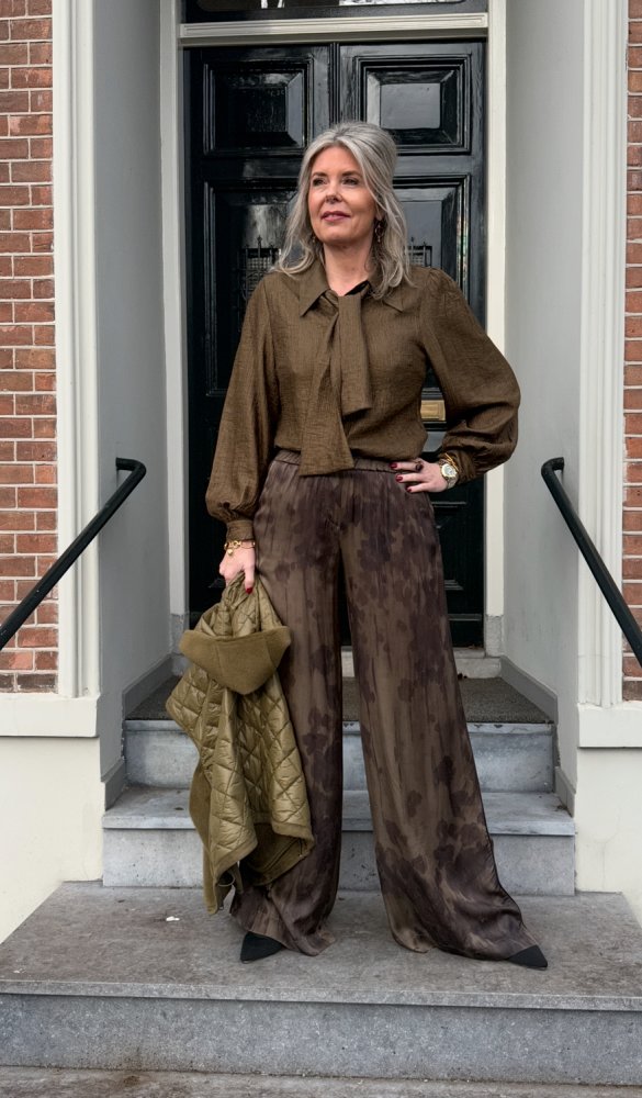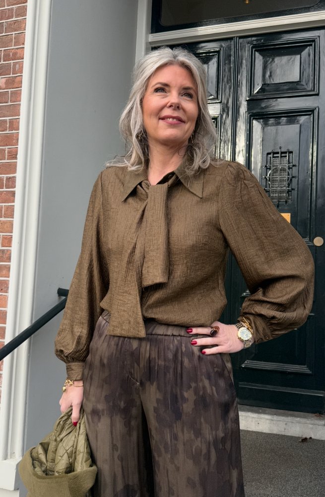 Prachtig klassiek en vrouwelijk, dat is de Veronne blouse. Deze elegante top heeft een soepelvallende pasvorm met pofmouwen en is afgewerkt met een stijlvolle sjaal in de hals. Deze sjaal kan zowel casual losjes als klassiek in een strik geknoopt worden. Combineer de blouse met een tijdloze pantalon en een paar loafers.