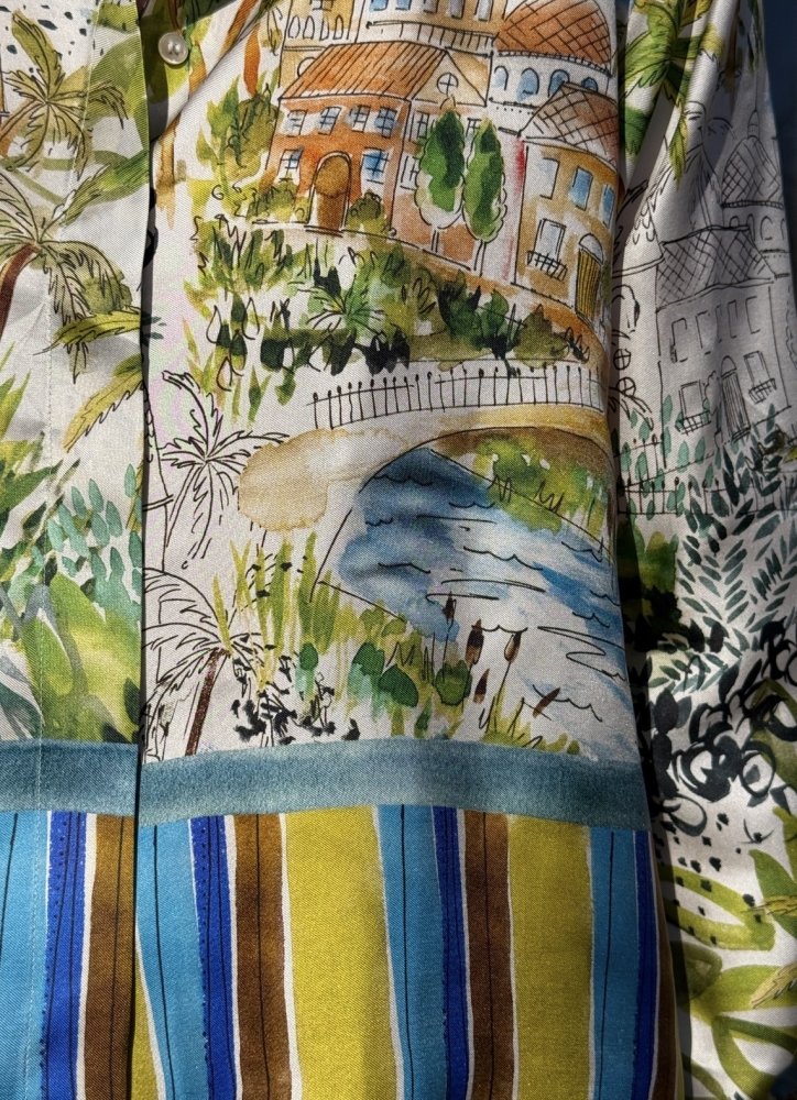 De 100% zijden stof valt prachtig om het lichaam en voelt licht en zacht aan op de huid. De pasvorm is iets losser, waardoor je hem moeiteloos draagt en hij elegant met je meebeweegt.