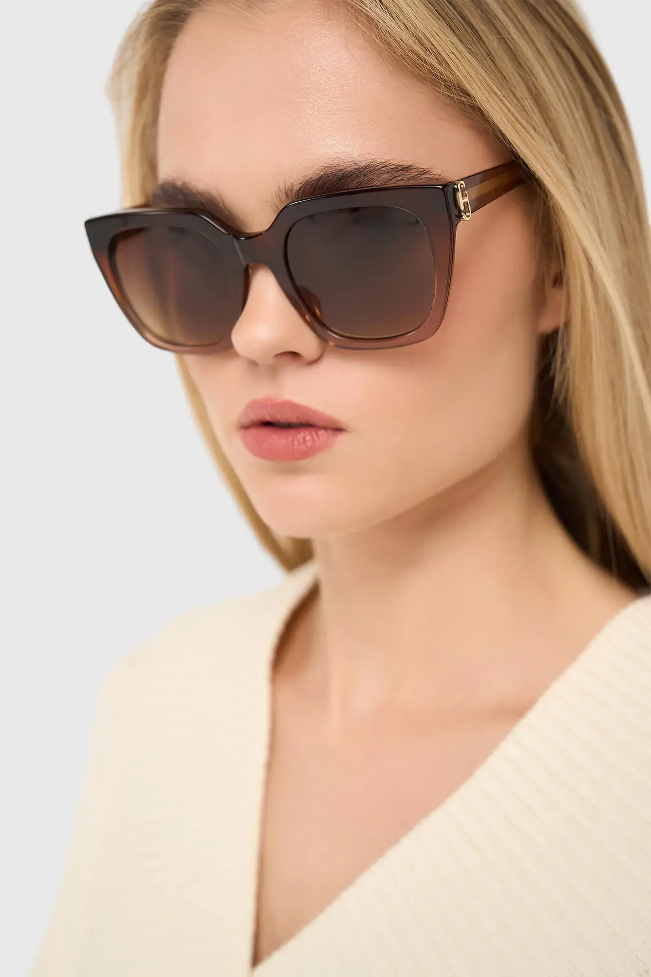 De luxe dames zonnebril heeft een duidelijke, vrouwelijke uitstraling die past bij de JANICE vrouw. De bruintint geeft een warme gloed aan het gezicht en vormt een mooie balans met verschillende huidtinten. Dit maakt de zonnebril een perfecte aanvulling op een garderobe met natuurlijke kleuren en rijke materialen, precies zoals binnen de collecties van het merk worden gebruikt.