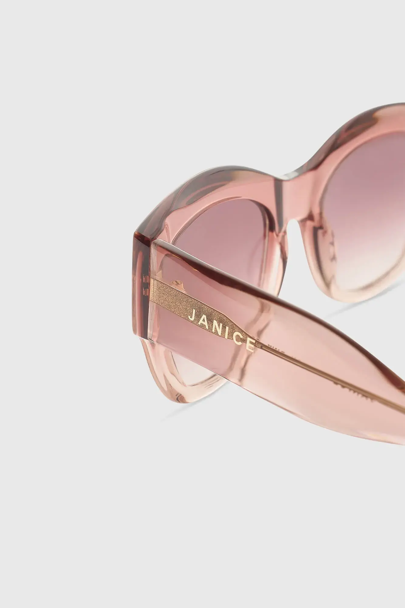 Deze zonnebril is ontworpen om stijlvolle eenvoud te combineren met luxe. Het acetaat materiaal geeft het montuur een hoogwaardige uitstraling en een comfortabel draaggevoel. De roze kleur maakt de zonnebril een subtiel statement dat in elk seizoen gedragen kan worden. Dankzij de moderne vorm krijgt het ontwerp een eigentijdse twist, zonder dat het uitbundig wordt. De zonnebril sluit hiermee perfect aan bij de visie van JANICE rondom silent luxury, waarbij kwaliteit en mooie materialen centraal staan.