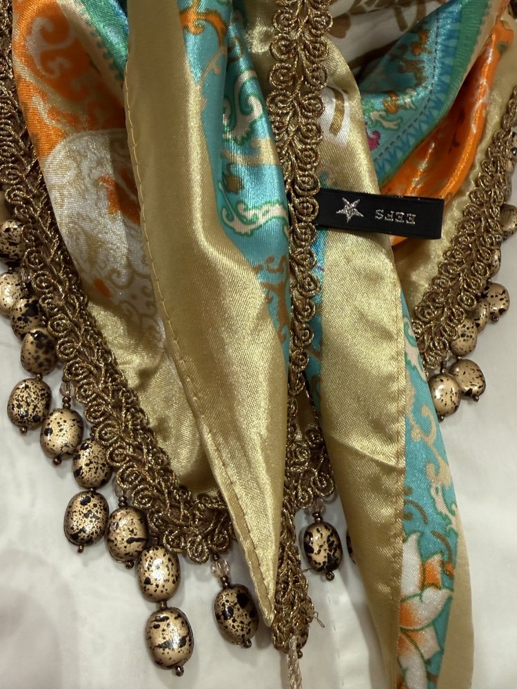 Satijnen Sjaal EEFS – Beige Oranje Mint