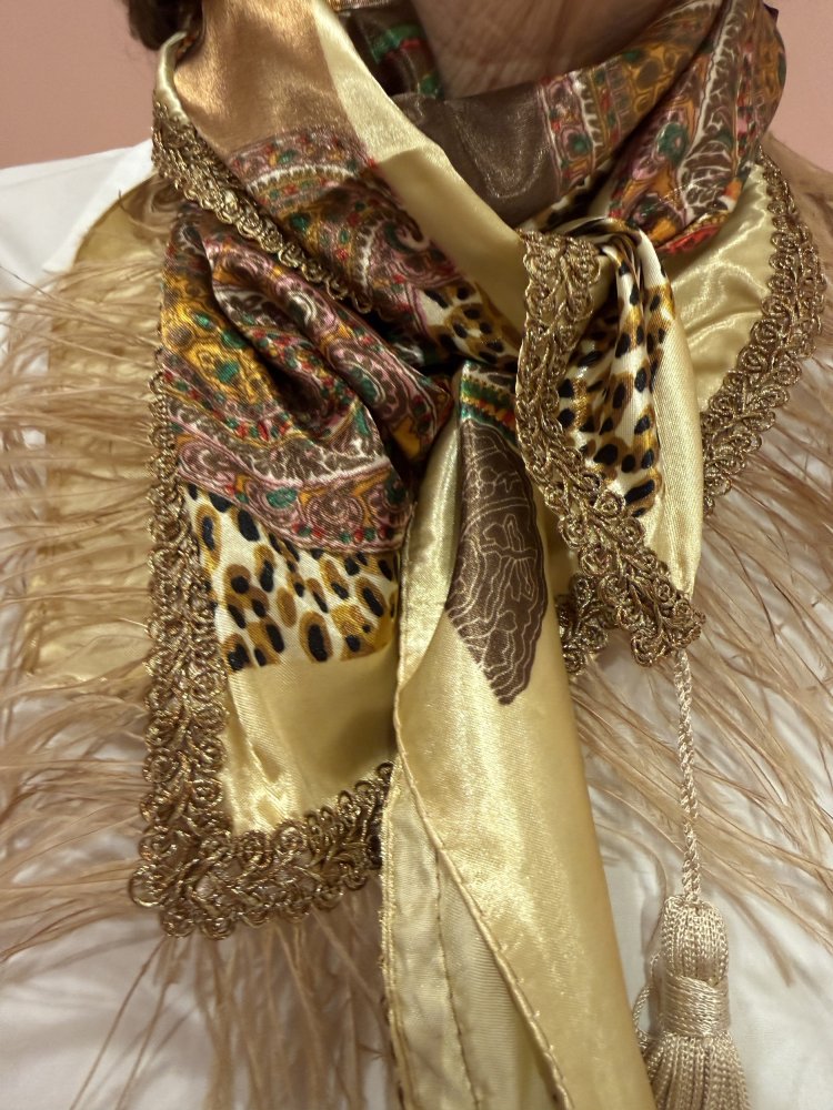 Satijnen Sjaal EEFS – Bruin Beige Veren