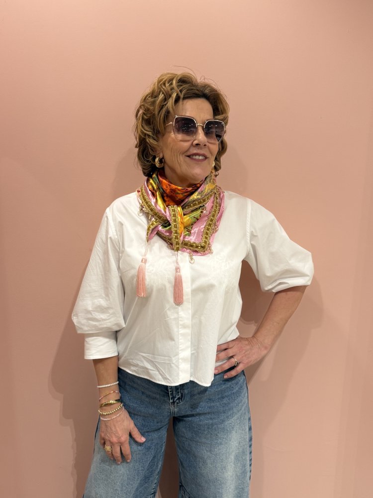 Draag hem losjes om je hals, elegant over je schouders of speels aan je tas voor een extra kleuraccent.