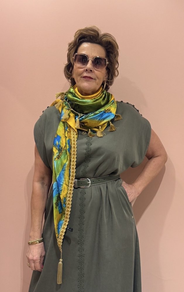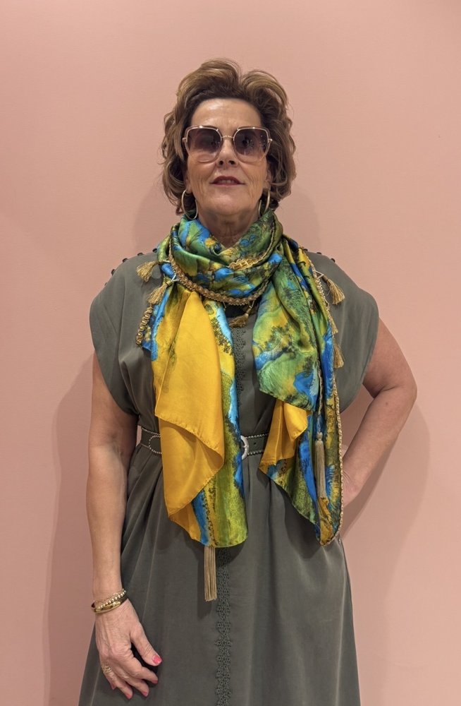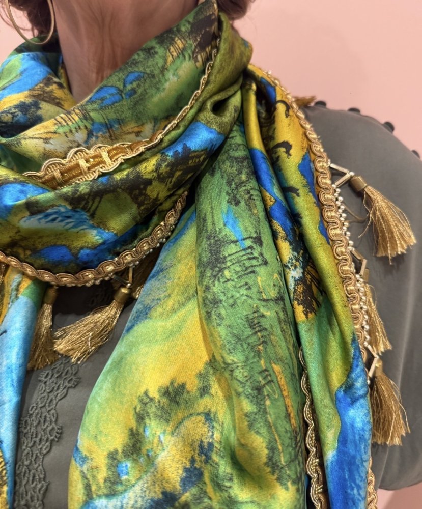 zijde sjaal EEFS groen blauw geel