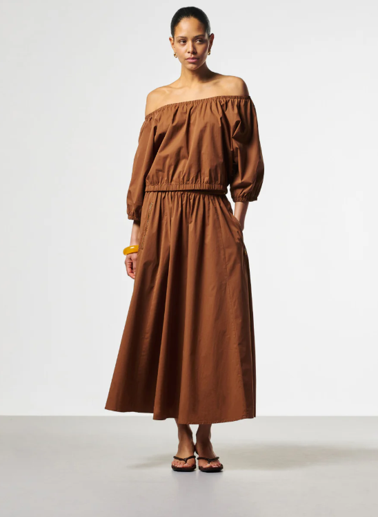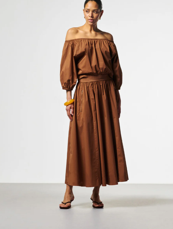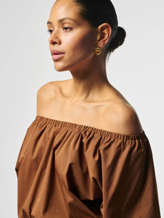 AAIKO Maddy Top Bruin – Luchtige Dames Top met Off-Shoulder Halslijn