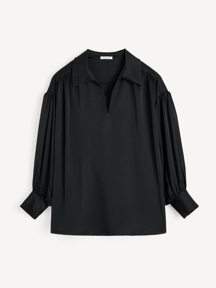 Ontworpen in een minimalistisch silhouet dat de seizoenen zal overstijgen, past de Leonora blouse precies in je bestaande garderobe - en werkt ze voor tal van gelegenheden. Het ontwerp in tuniekstijl is gemaakt van weelderig satijn en heeft een scherpe kraag, V-hals en manchetten met knopen. Let op het kleine, geborduurde monogram.