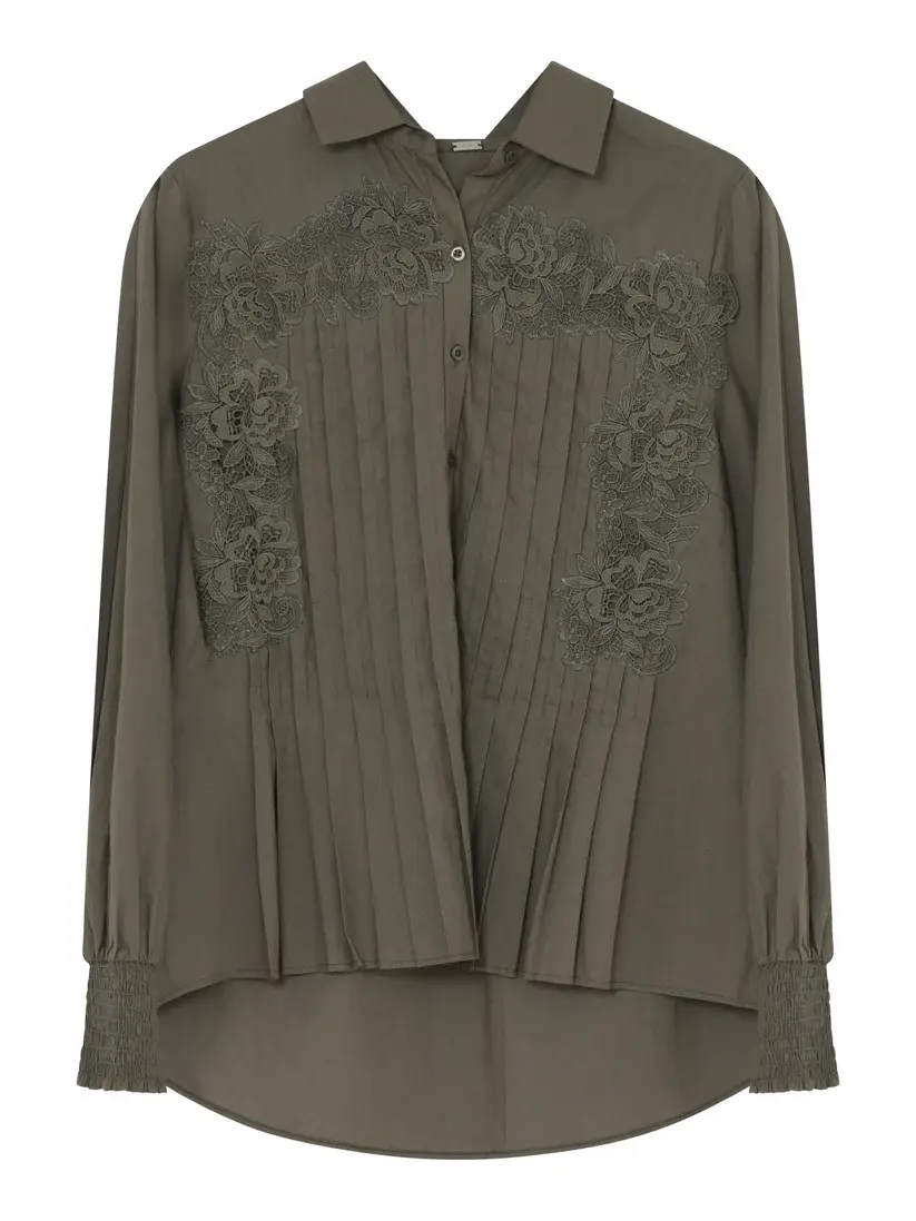 Zeer uitgewerkte blouse van Gustav. Voorkant heeft doorgestikte plooien en is bewerkt met kant.