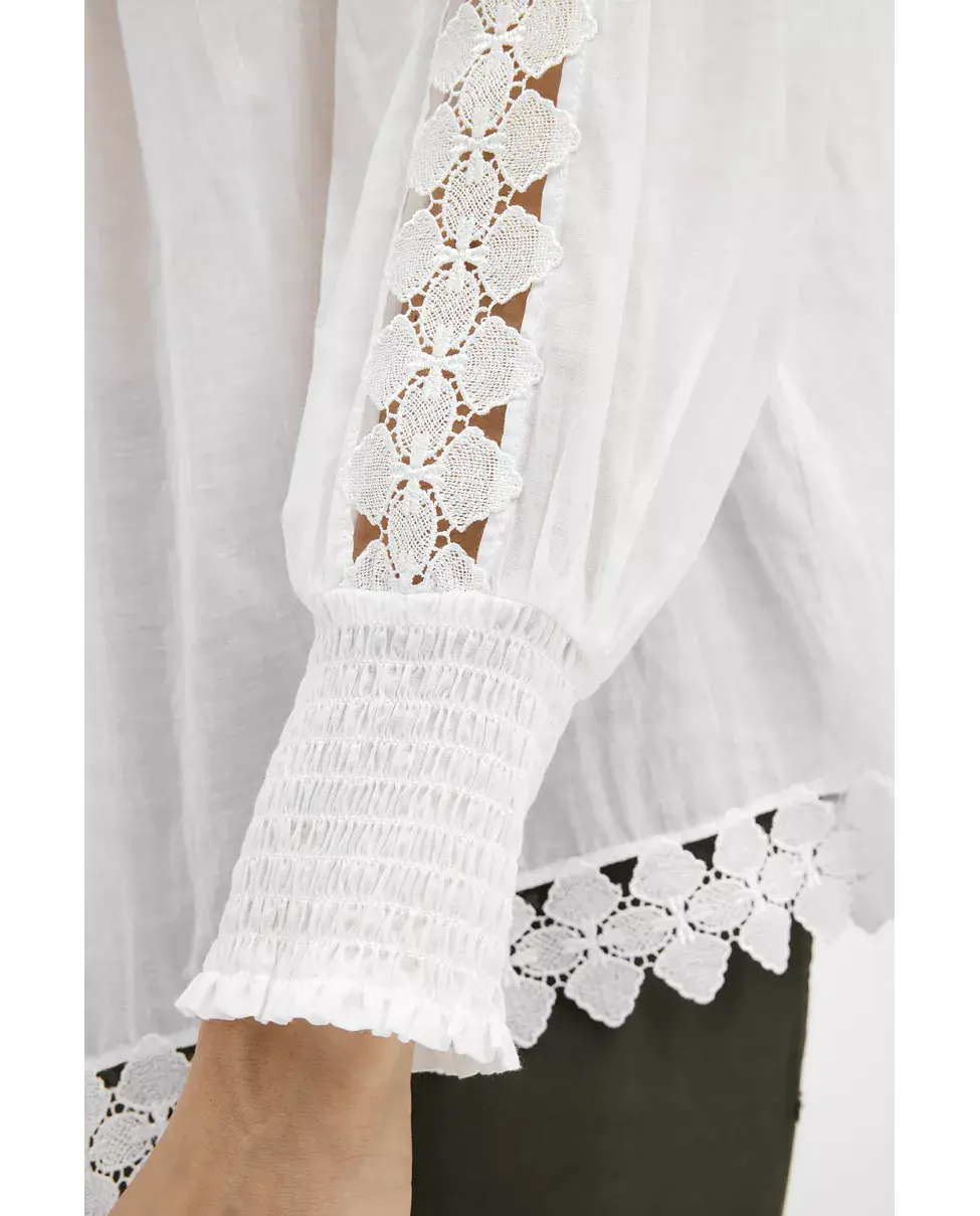 Annsofie – Dames blousestop van Gustav met kant, kraag en gesmokte manchetten
