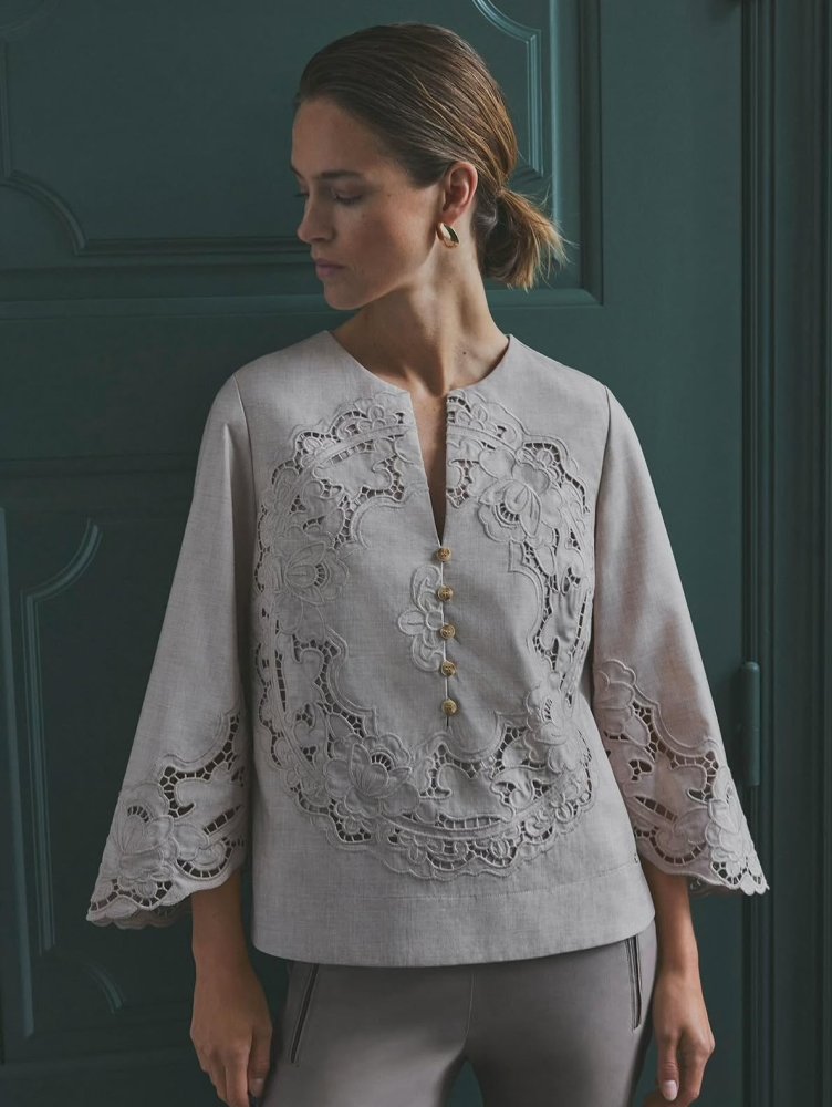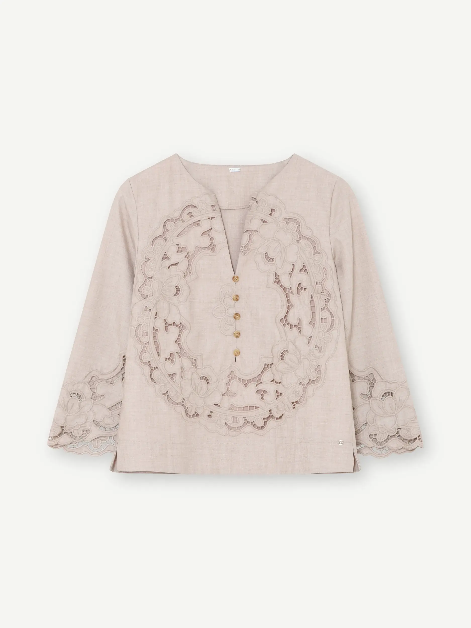 Naja, shirt van Gustav is een blouse met lange mouwen, bloemen borduursels en, prachtige blouse het hele jaar door.