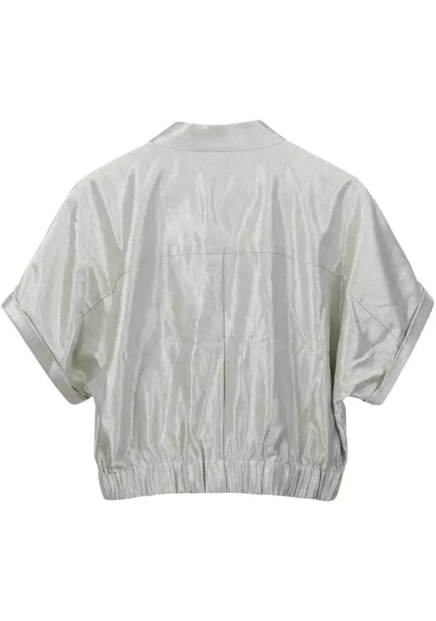 De Jacket Aniza is zo’n item dat direct klasse uitstraalt zonder moeite te doen. De subtiele glans in de zilveren stof geeft een moderne, verfijnde look, terwijl de losvallende pasvorm zorgt voor een ontspannen silhouet dat moeiteloos chic oogt.