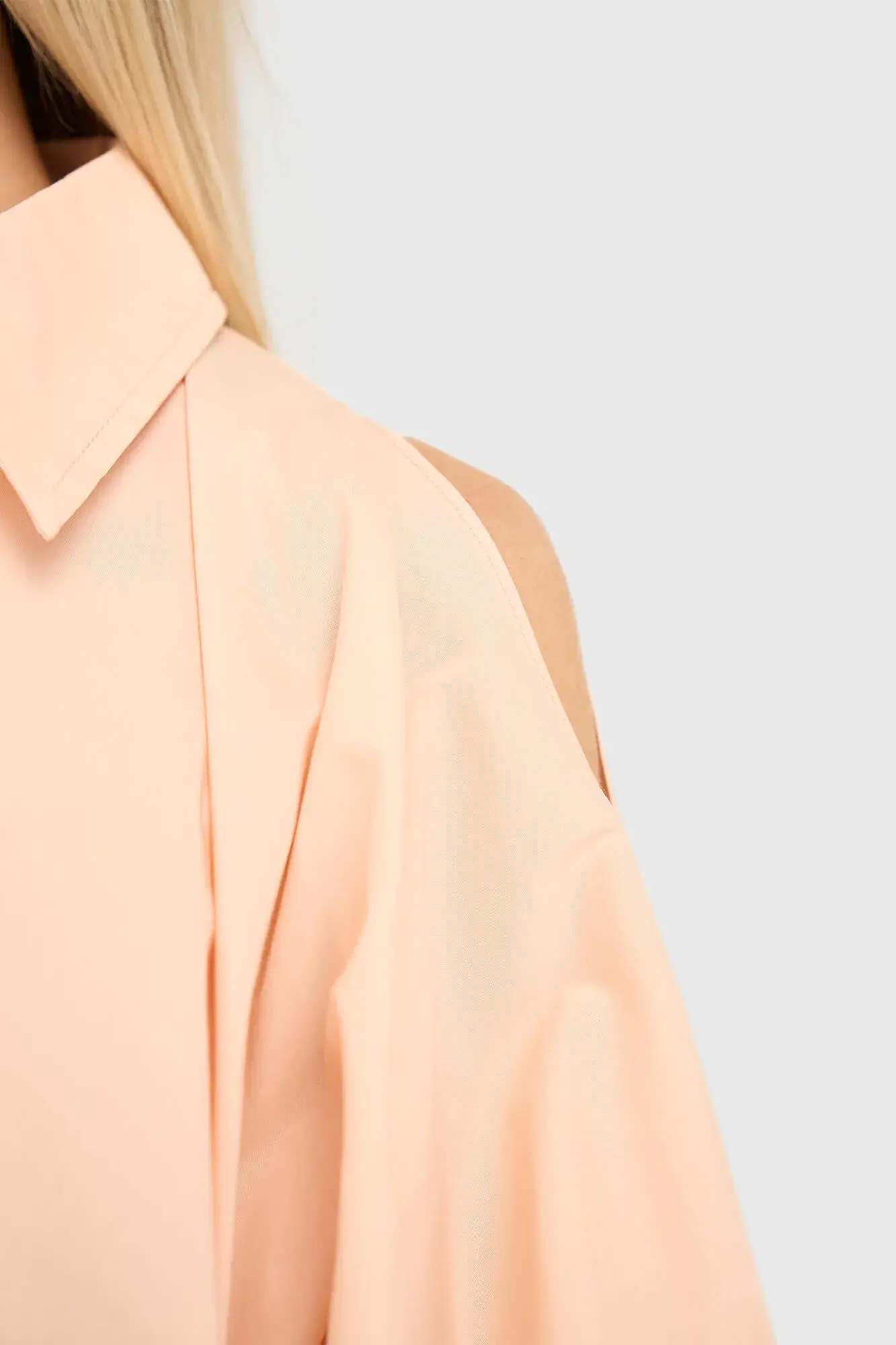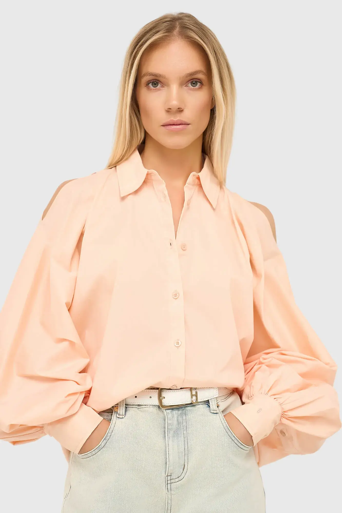 BLOUSE DAMES KATOEN PEACH TONE POFMOUW CUT OUT