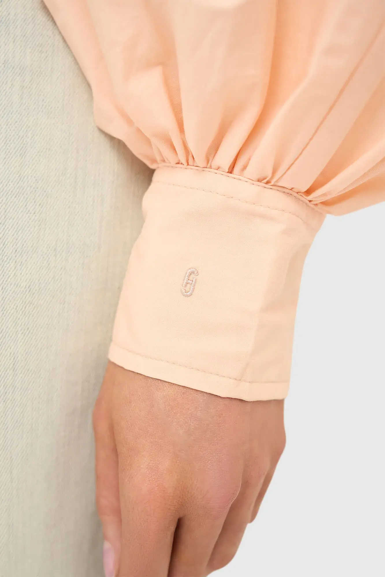 De blouse dames katoen peach tone pofmouw STONE CUT OUT van JANICE is een stijlvolle keuze voor vrouwen die houden van luxe basics met een moderne twist. Deze dames blouse is uitgevoerd in een zachte peach tint en gemaakt van 70% katoen, 27% nylon en 3% spandex. De blouse heeft een kraag, een knoopsluiting en raglan mouwen die overgaan in een royale pof. De hogere manchetten sluiten mooi aan en geven het ontwerp een elegant silhouet. Dankzij de comfortabele stofblend draagt deze luxe dames blouse licht en soepel, perfect voor iedere dag.