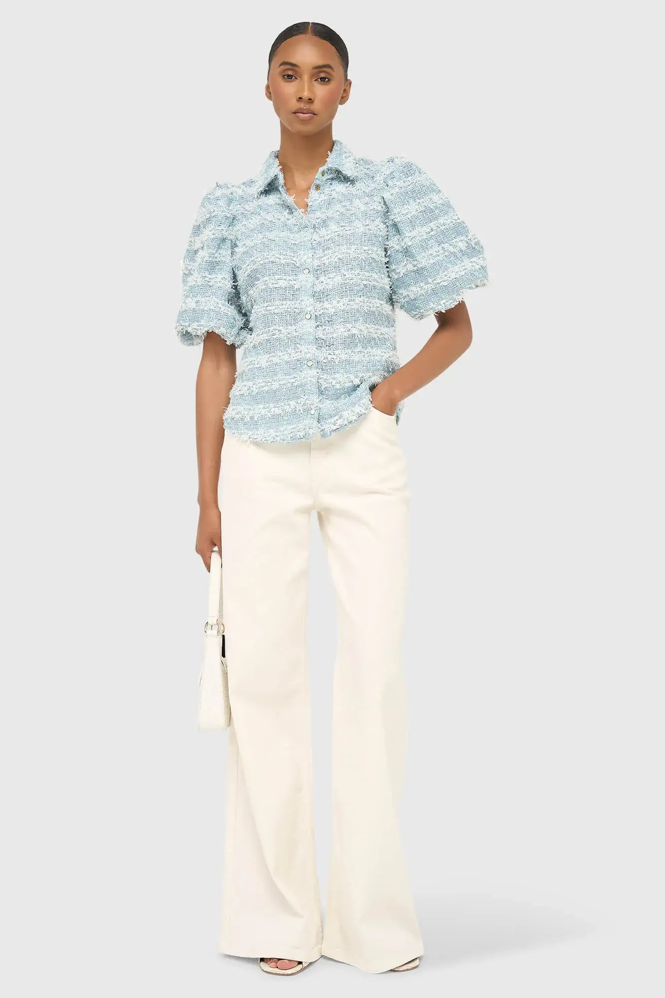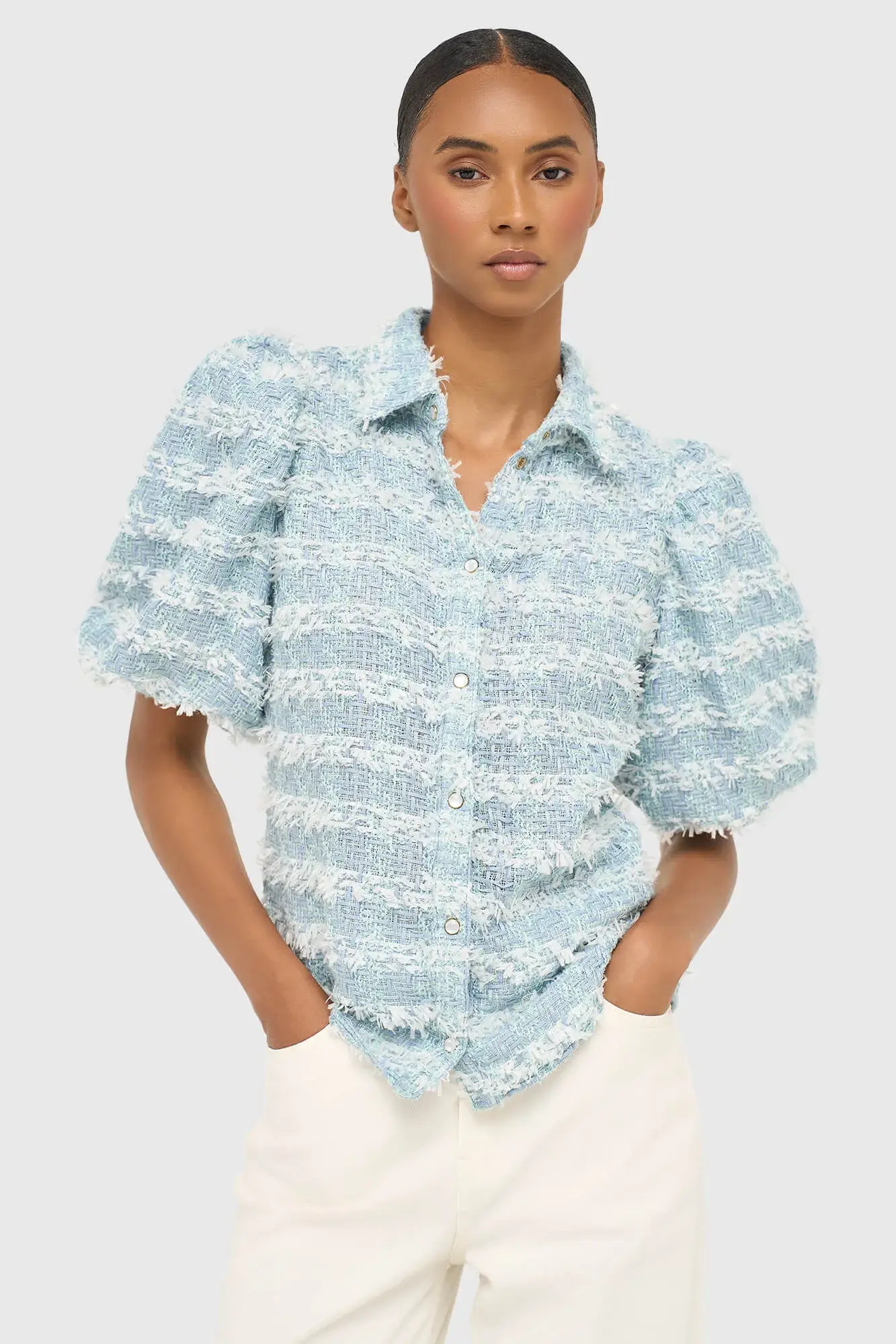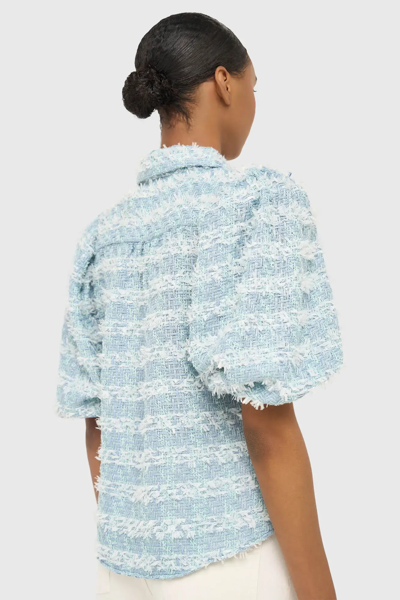 Blouse Dames Pof Mouw Tweed Lars Blauw