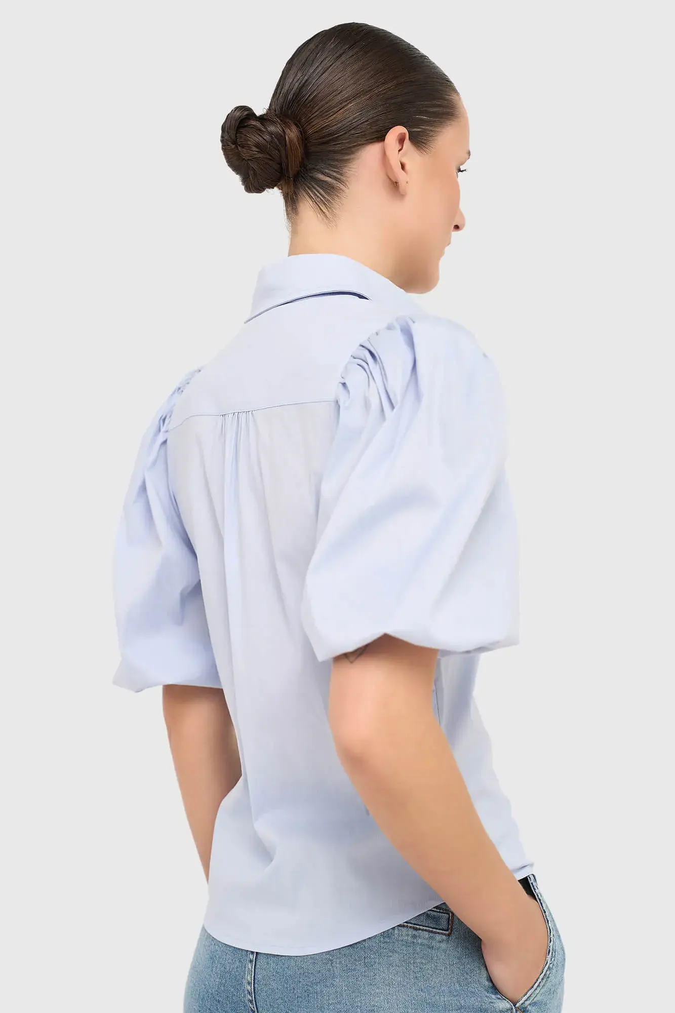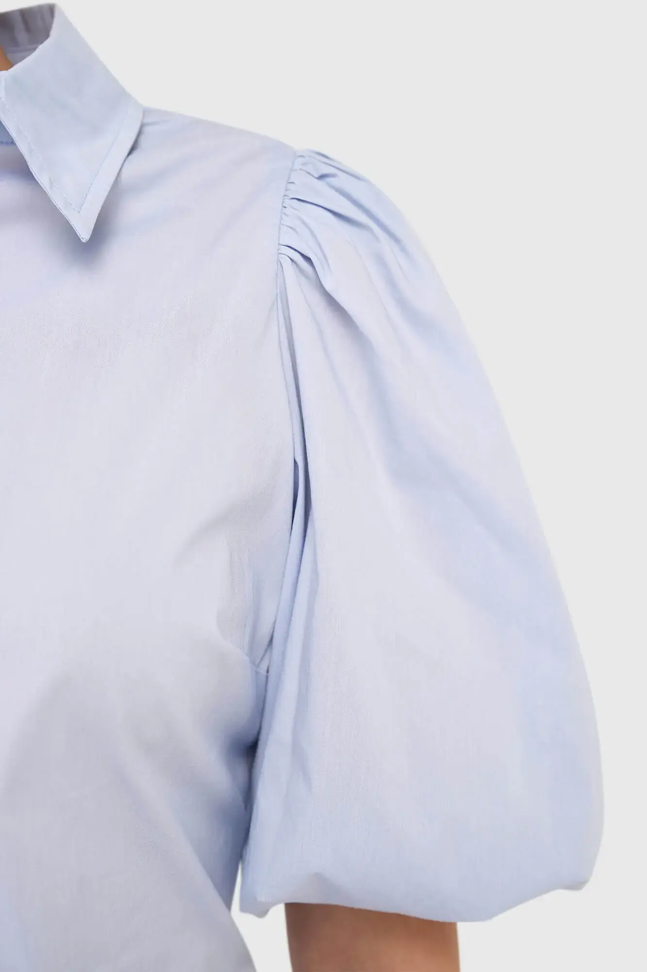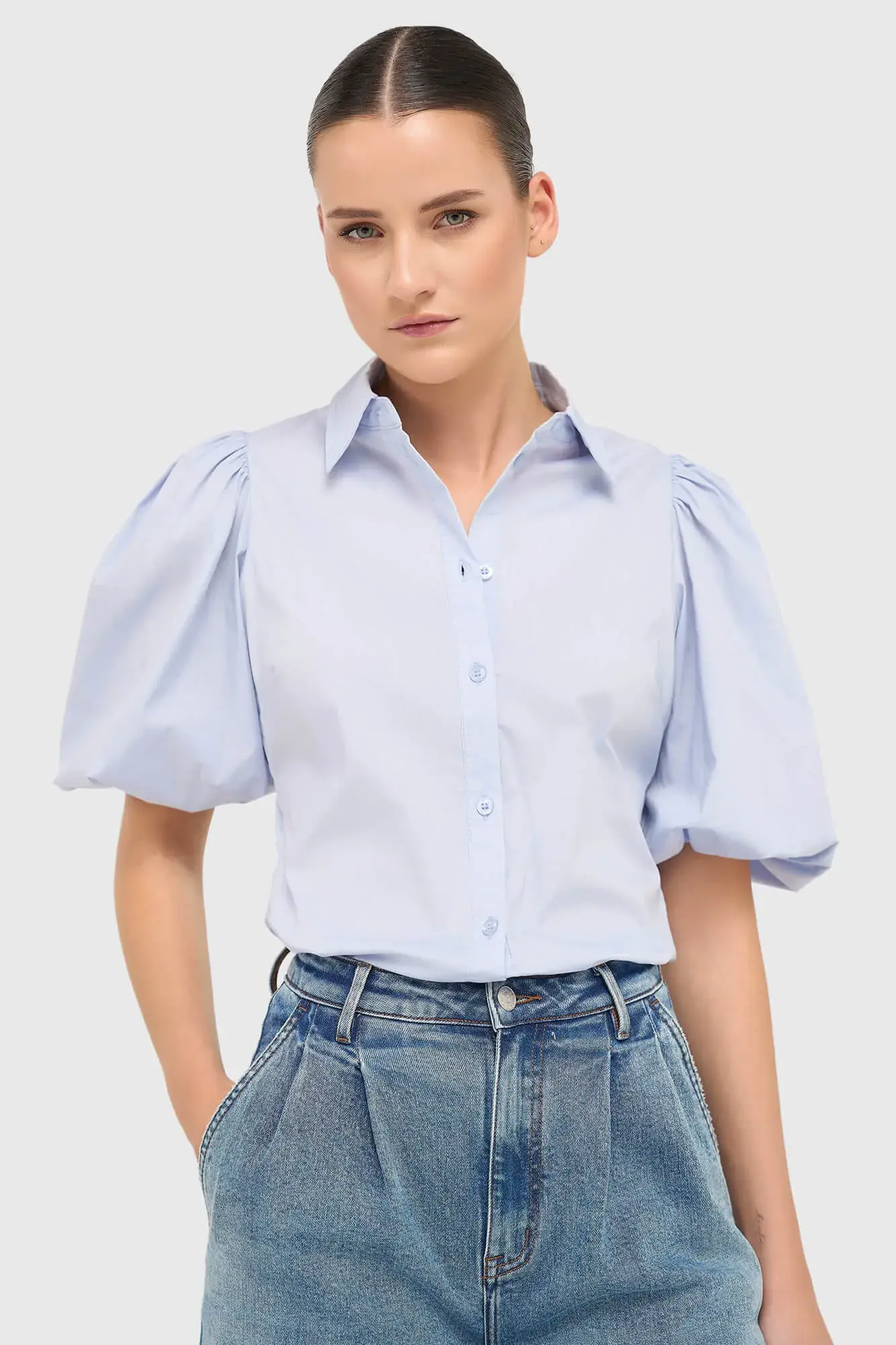 De katoenen blouse dames LARS blauw van JANICE is een moderne en verfijnde toevoeging aan je garderobe. Deze luxe dames blouse is uitgevoerd in een rijke mix van 70% katoen, 27% nylon en 3% spandex, waardoor de stof zacht, comfortabel en tegelijk vormvast blijft. De blauwe kleur geeft de blouse een tijdloze uitstraling en sluit perfect aan bij een garderobe die draait om kwaliteit en ingetogen elegantie. Dankzij de licht getailleerde pasvorm en subtiele pofmouw krijgt de blouse een vrouwelijk en krachtig silhouet dat geschikt is voor zowel zakelijke als casual momenten.