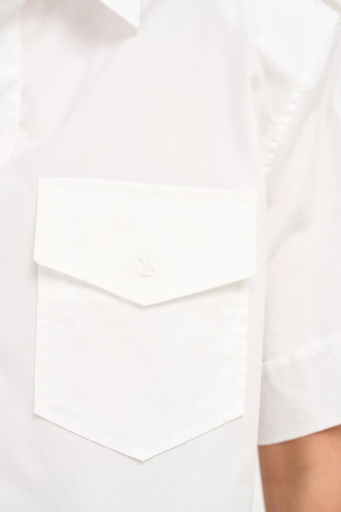 De witte blouse dames katoen wit SPIKE van JANICE is een moderne essential met een frisse, tijdloze uitstraling. Deze dames blouse is gemaakt van 100% katoen en heeft een korte pasvorm die zorgt voor een eigentijdse look. De kraag en volledige knoopsluiting geven de blouse een klassieke basis, terwijl de subtiele schoudervulling het silhouet extra body en elegantie geeft. Dankzij de luxe uitstraling en het draagcomfort sluit dit ontwerp perfect aan bij de collectie van JANICE, waar kwaliteit en verfijning altijd centraal staan.