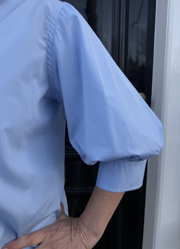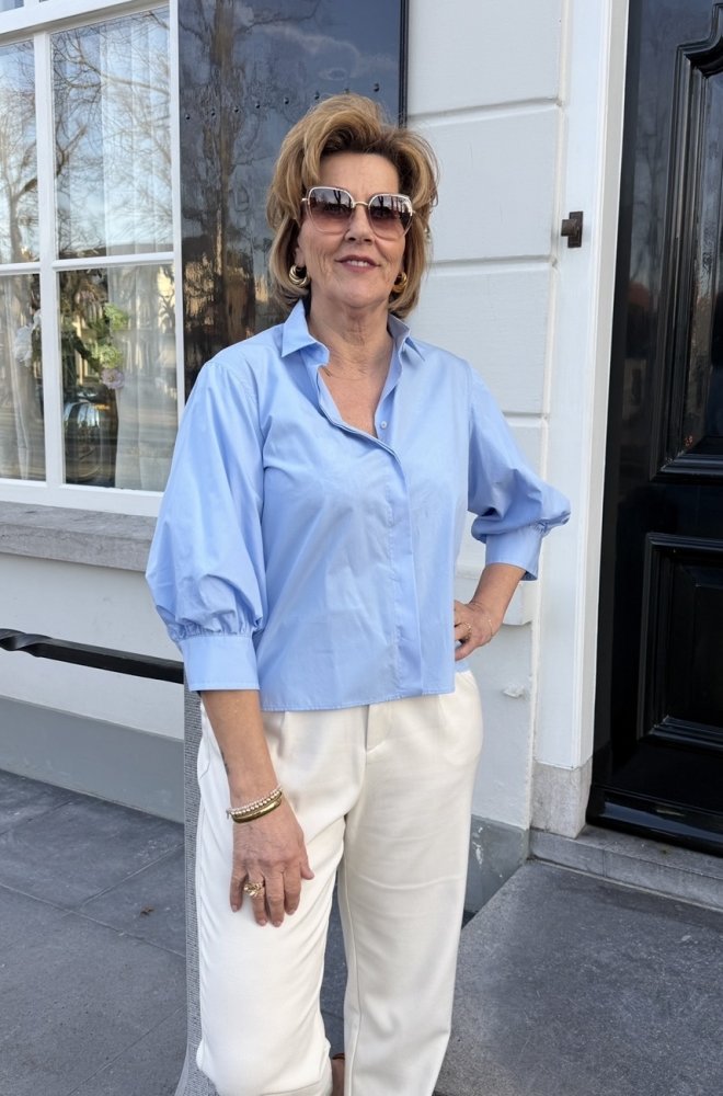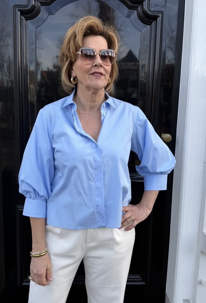 De blouse heeft mooie pofmouwen die zorgen voor een stijlvolle en modieuze look. De lichte katoenen kwaliteit draagt heerlijk comfortabel en geeft de blouse een mooie, soepele valling.