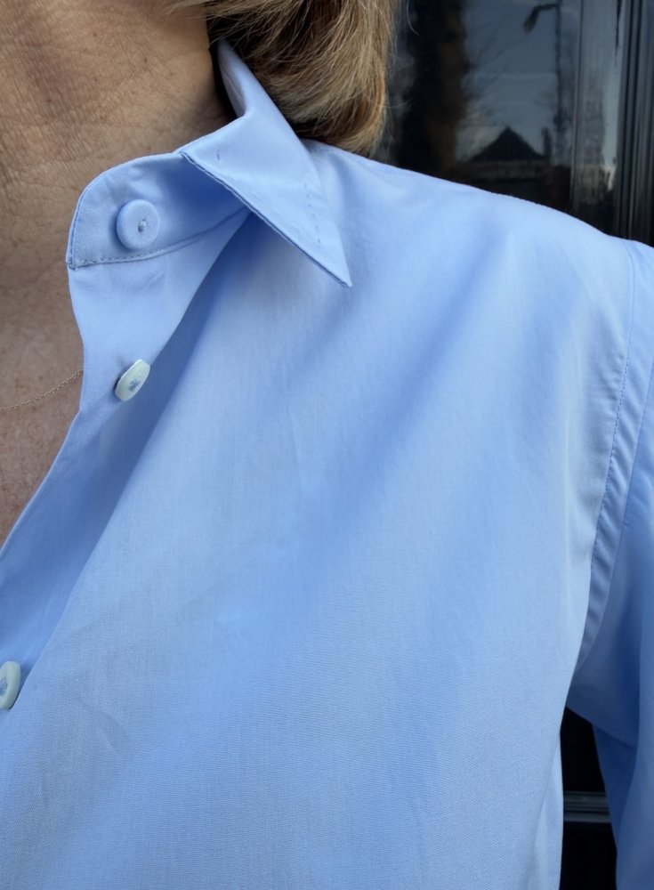 Deze blouse is verkrijgbaar in blauw en wit, twee frisse kleuren die perfect passen in een stijlvolle garderobe.