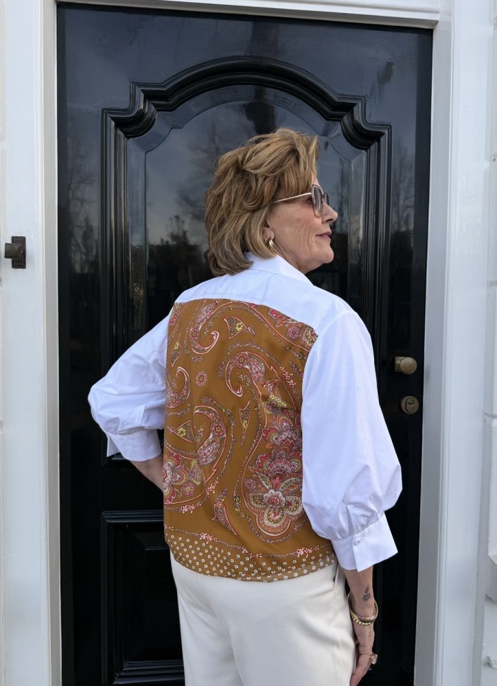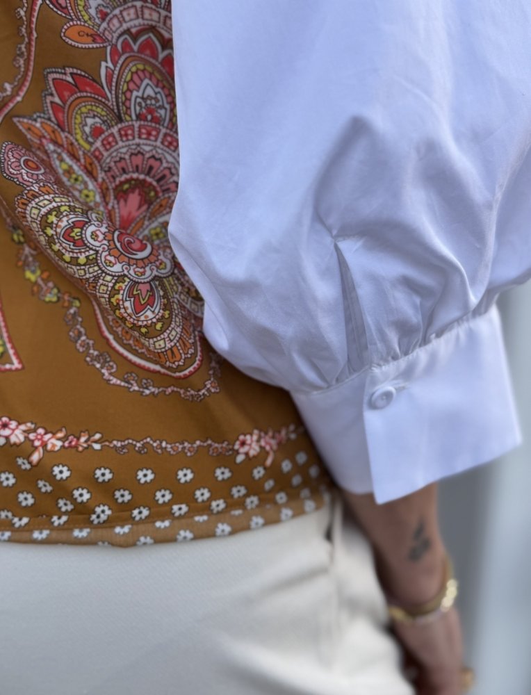 Pofmouw Blouse met Zijden Print Achterkant – Le Sarte Pettegole