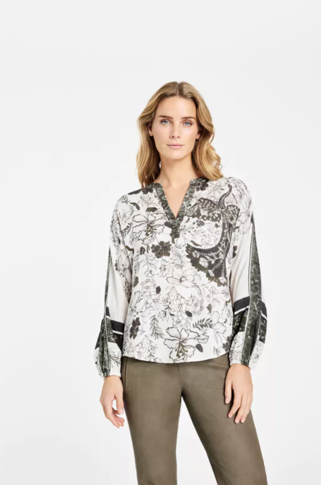 Sussie – Dames blousestop van Gustav met bloemenprint, lange mouwen en ronde hals met V-uitsnede