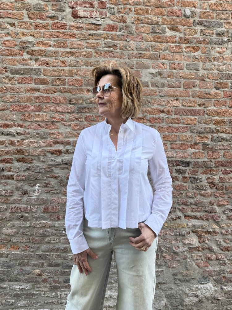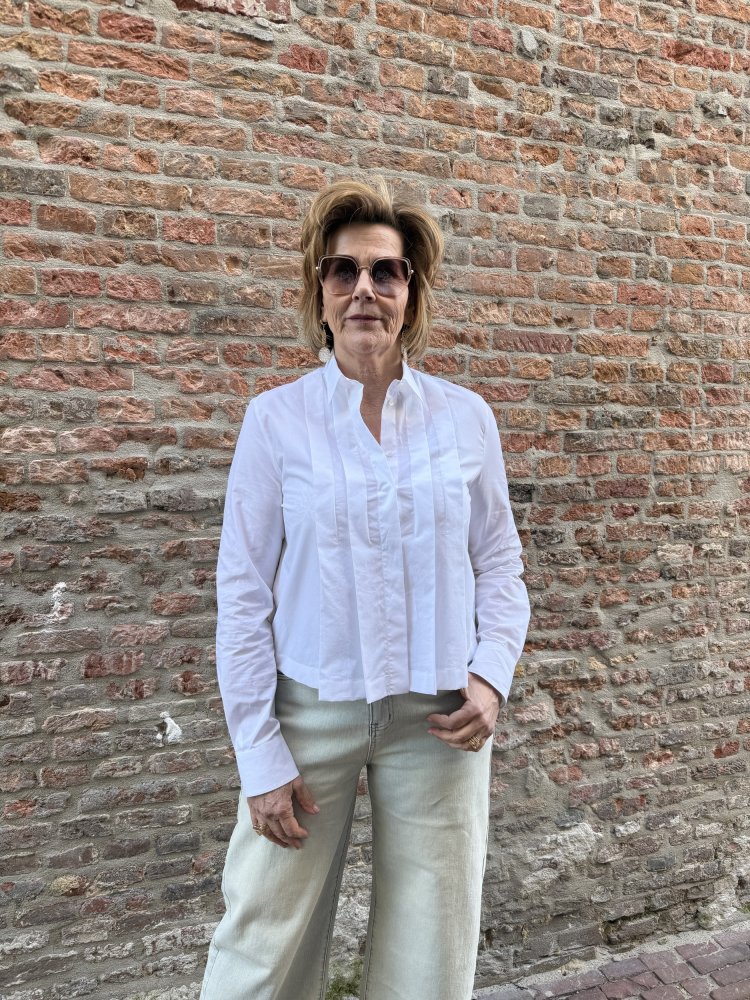 De subtiele plooidetails aan de voorzijde geven deze blouse nét dat beetje extra, terwijl de pasvorm losjes en comfortabel blijft.