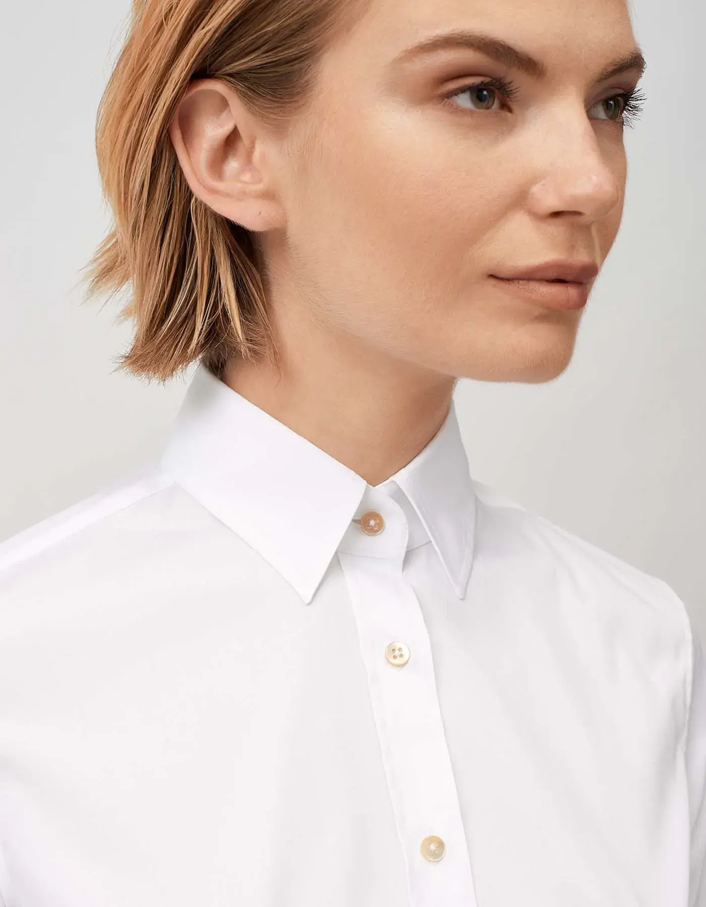 Een belangrijke klassieker in damesoverhemden als het gaat om eenvoudige stijl en aandacht voor detail. Met een klassieke rechte kraag en een slanke pasvorm draait dit item helemaal om het beste in kleermakersstijl. Het perfecte overhemd, ongeacht de gelegenheid.