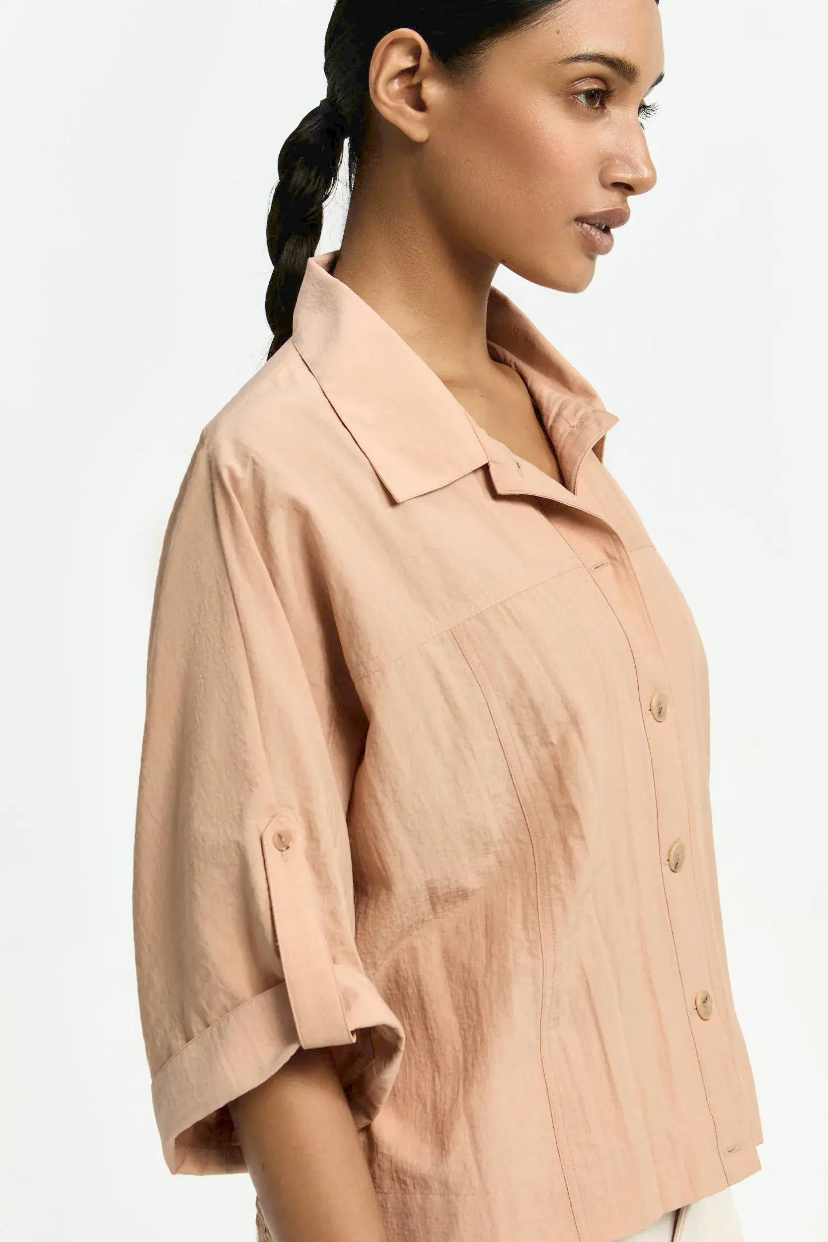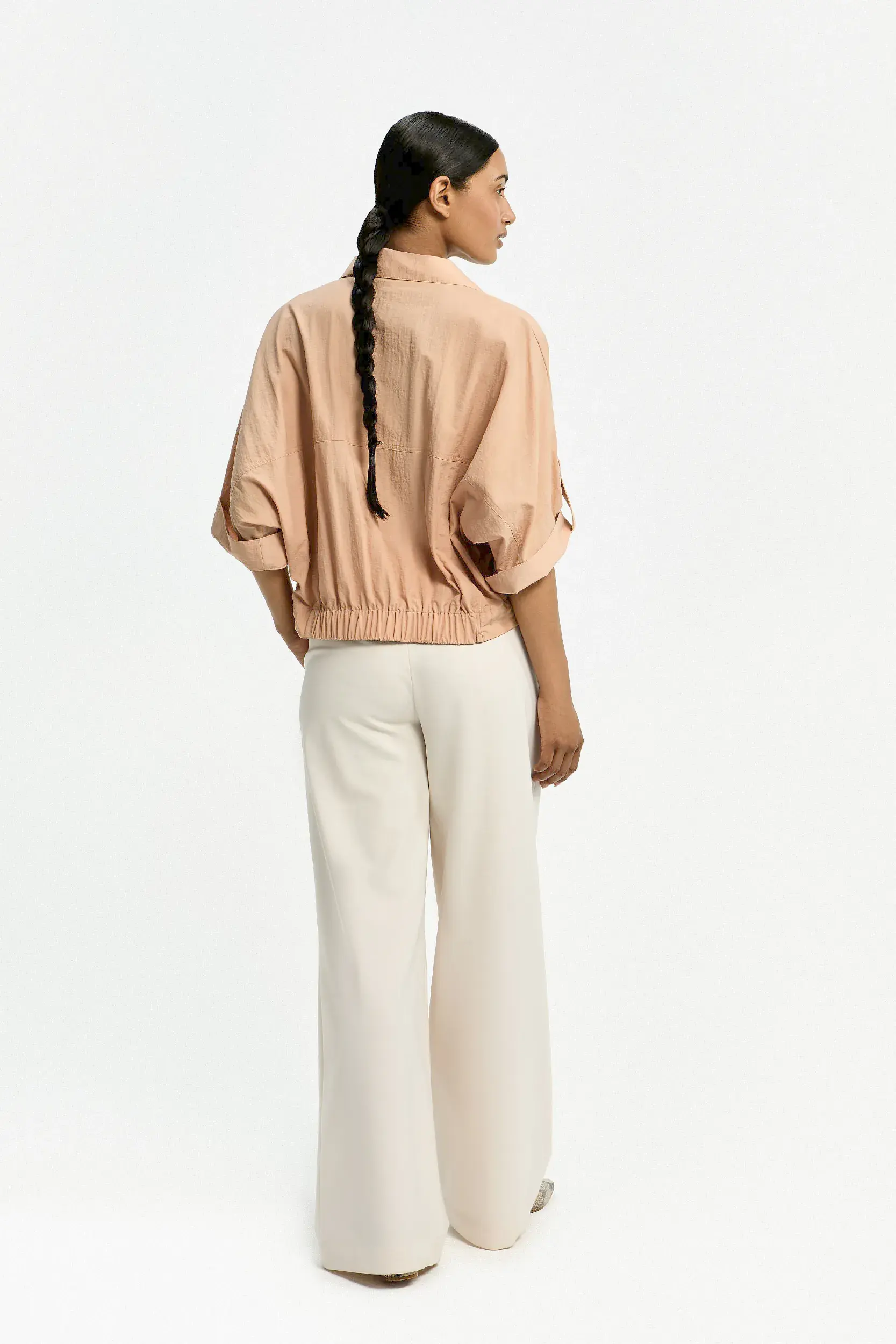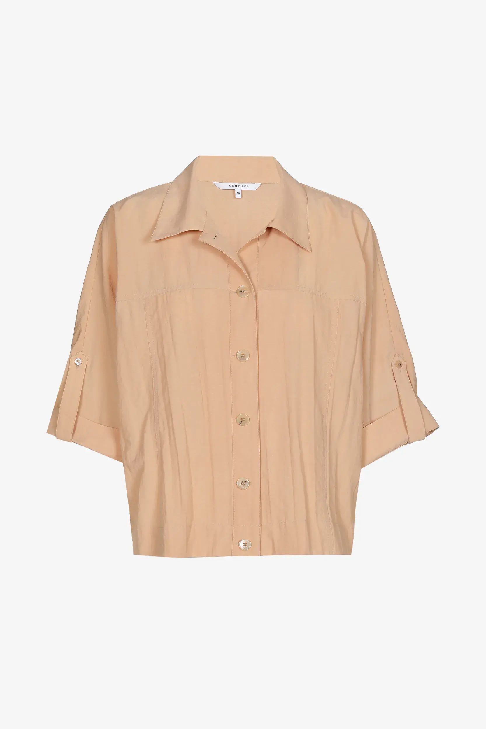 Damesblouse in crushed in 2 kleuren verkrijgbaar Beige en Groen
