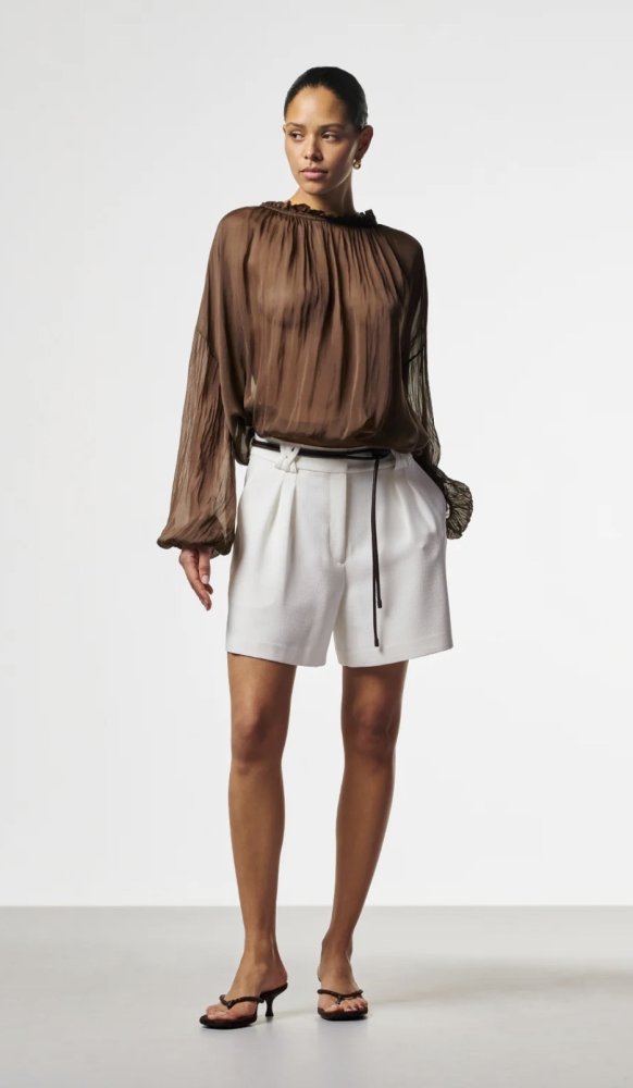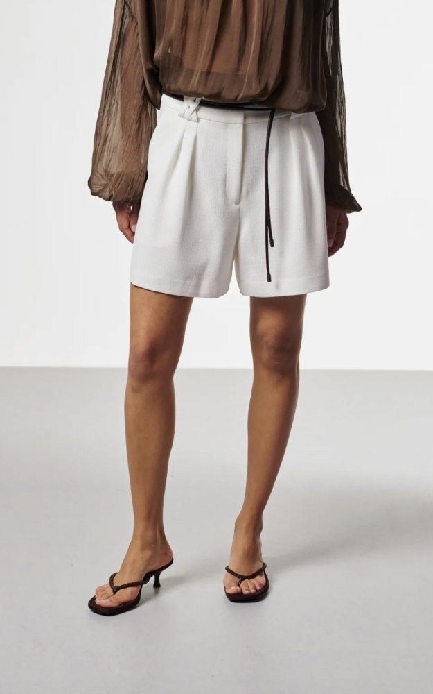 De AAIKO Riska short in wit is een stijlvolle en verfijnde dames short die comfort en klasse moeiteloos combineert. De zachte crèmetint geeft een frisse, luxe uitstraling en maakt deze short perfect voor zowel een casual als een meer geklede look.