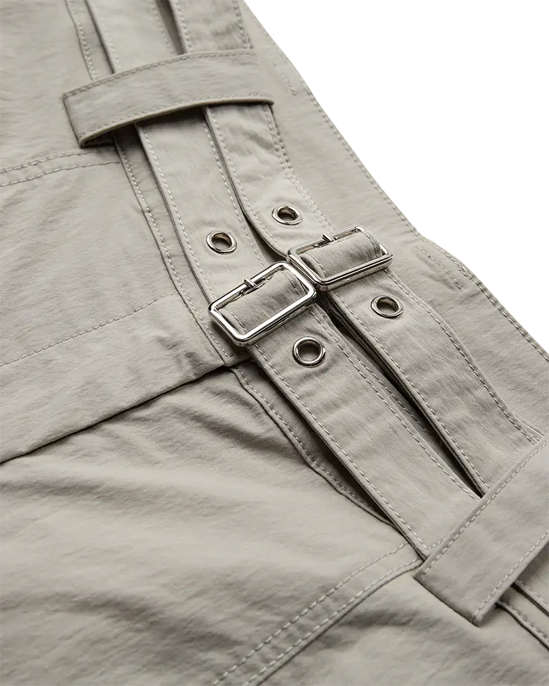 een dubbele taille en drukknopen in de benen, zodat ze op meerdere manieren gestyled kunnen worden.