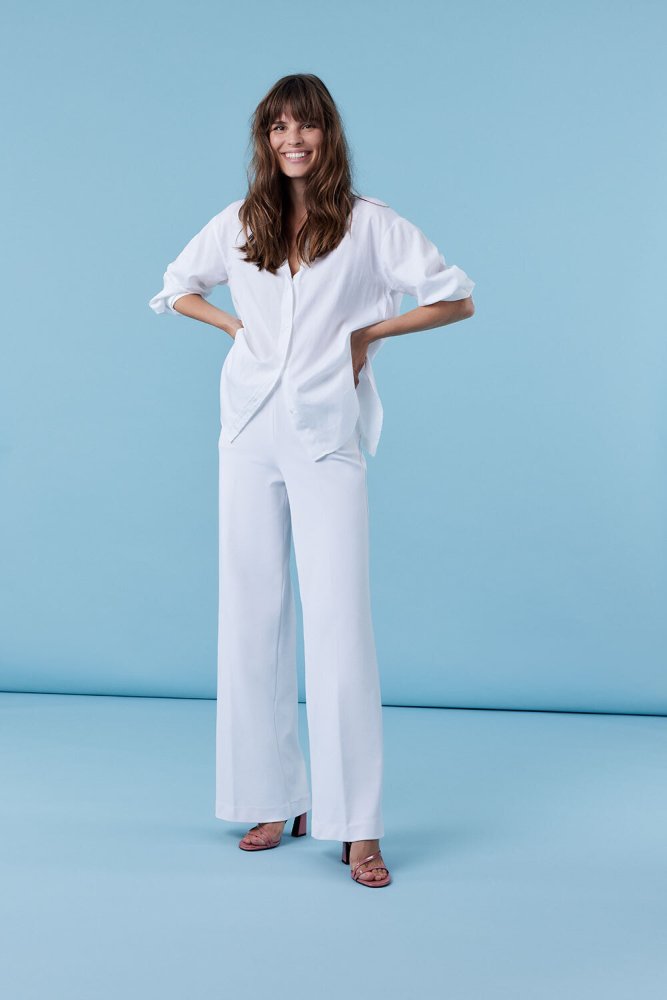 De Lilly Pants Wide Uni Sport is een comfortabele en moderne broek met een sportieve, verfijnde uitstraling. De middelhoge taille en brede, elastische tailleband zorgen voor een perfecte pasvorm en optimaal draagcomfort. De broek sluit mooi aan bij de heupen en valt vervolgens los langs het been met rechte, soepel vallende pijpen voor een elegant silhouet.