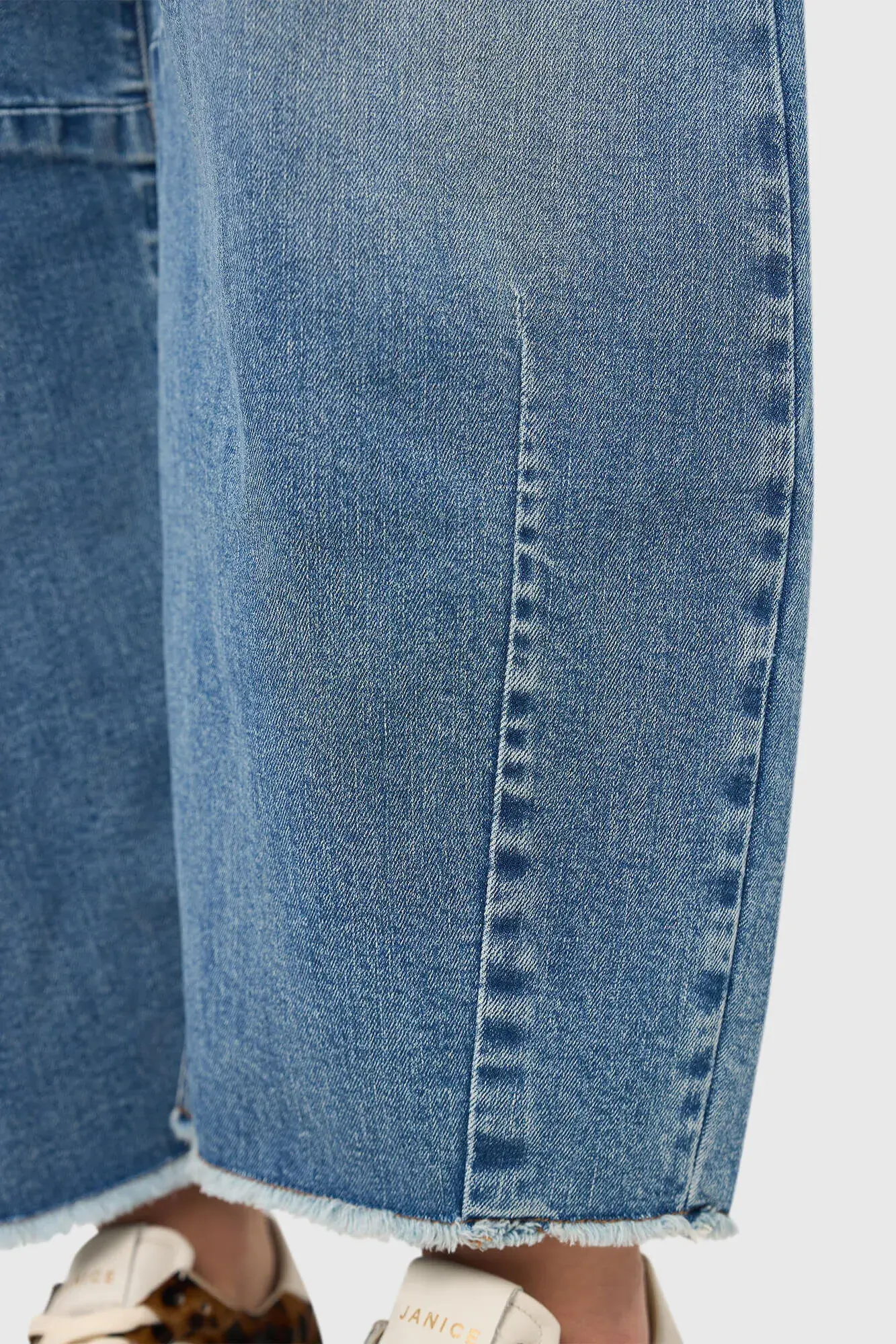 De barrel jeans dames midrise blauw 379 BILLY van JANICE is een moderne toevoeging aan de garderobe van elke vrouw die houdt van tijdloze kwaliteit en een comfortabele pasvorm. Deze denim is uitgevoerd in een zachte blauwe tint en gemaakt van 92% katoen, 7% polyester en 1% elastine. De barrel fit met wijde, iets rondvallende broekspijpen en een cropped lengte geeft deze dames jeans een eigentijdse uitstraling die past binnen de stille luxe waar JANICE om bekend staat. Dankzij de lichte stretch biedt de stof optimale bewegingsvrijheid en behoudt de jeans mooi zijn vorm, een eigenschap die aansluit op de denimkwaliteiten die bij JANICE vaak terugkomen in de collectie .