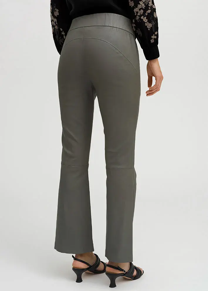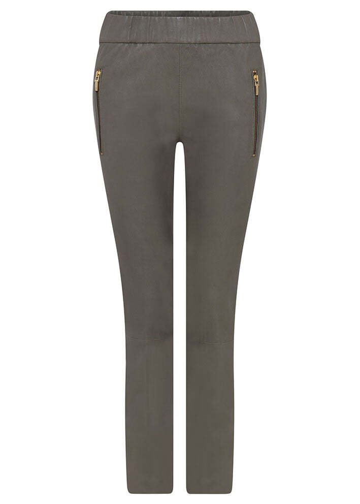Deze donker olijfgroene Doa leren broek van Gustav is er eentje waar je jarenlang plezier van hebt. Gemaakt van boterzacht lamsleer met stretch, waardoor hij niet alleen prachtig oogt maar ook heerlijk draagt. De kenmerkende saddleback-belijning aan de achterkant zorgt voor een mooi silhouet en de licht verkorte lengte geeft de broek een moderne, stijlvolle uitstraling.