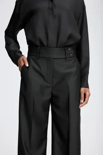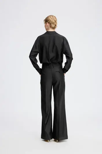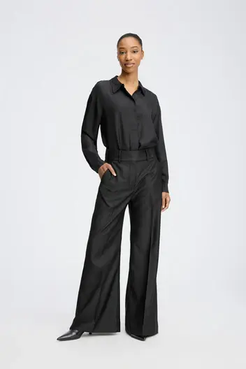 Elegante broek met wijde pijpen en fijne geplooide persplooien. Deze broek is ontworpen met riemlussen, zakken en een mooie knoopsluiting in de taille. Combineer met het Rillo-jasje voor een complete en stijlvolle outfit.