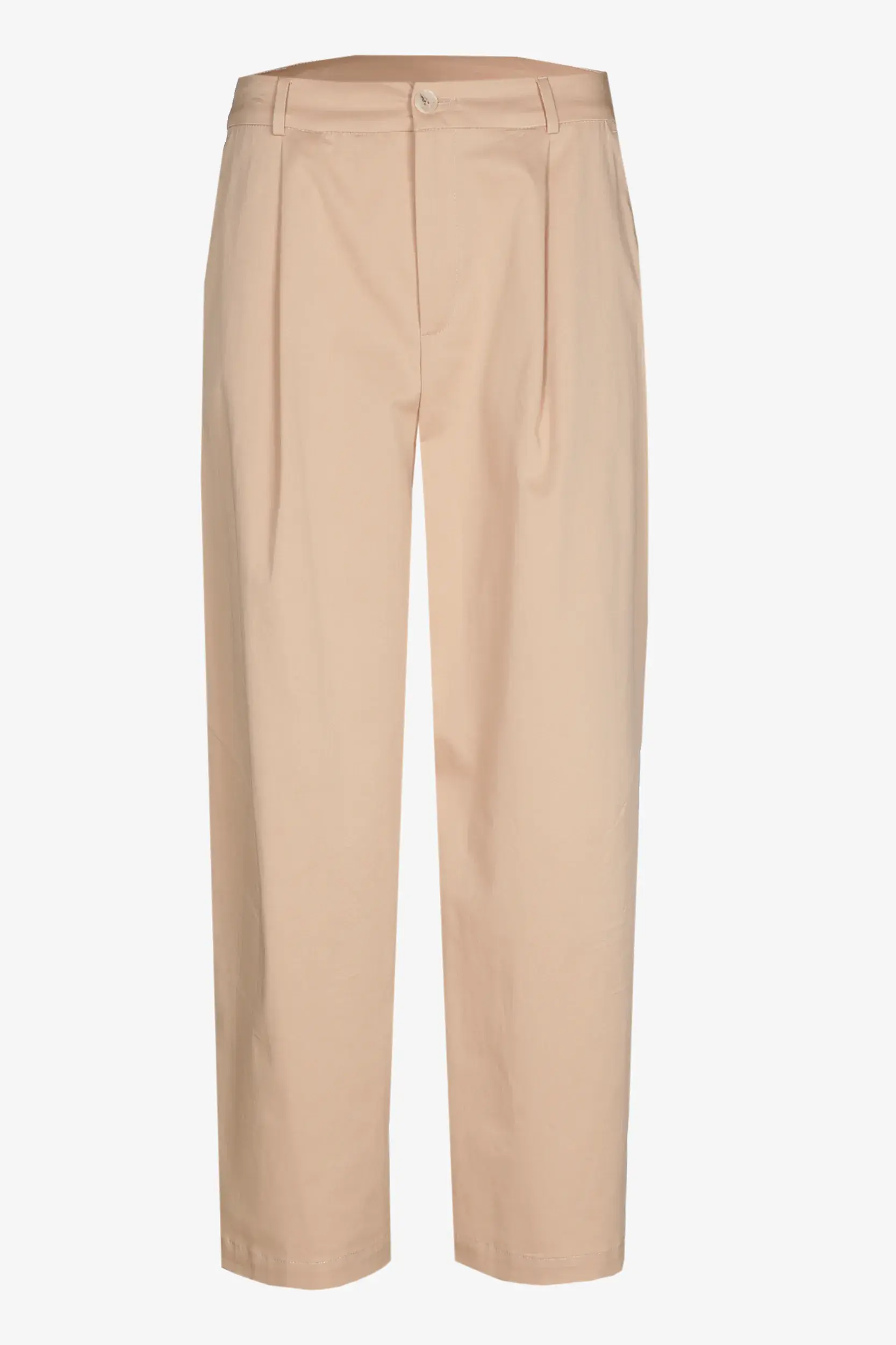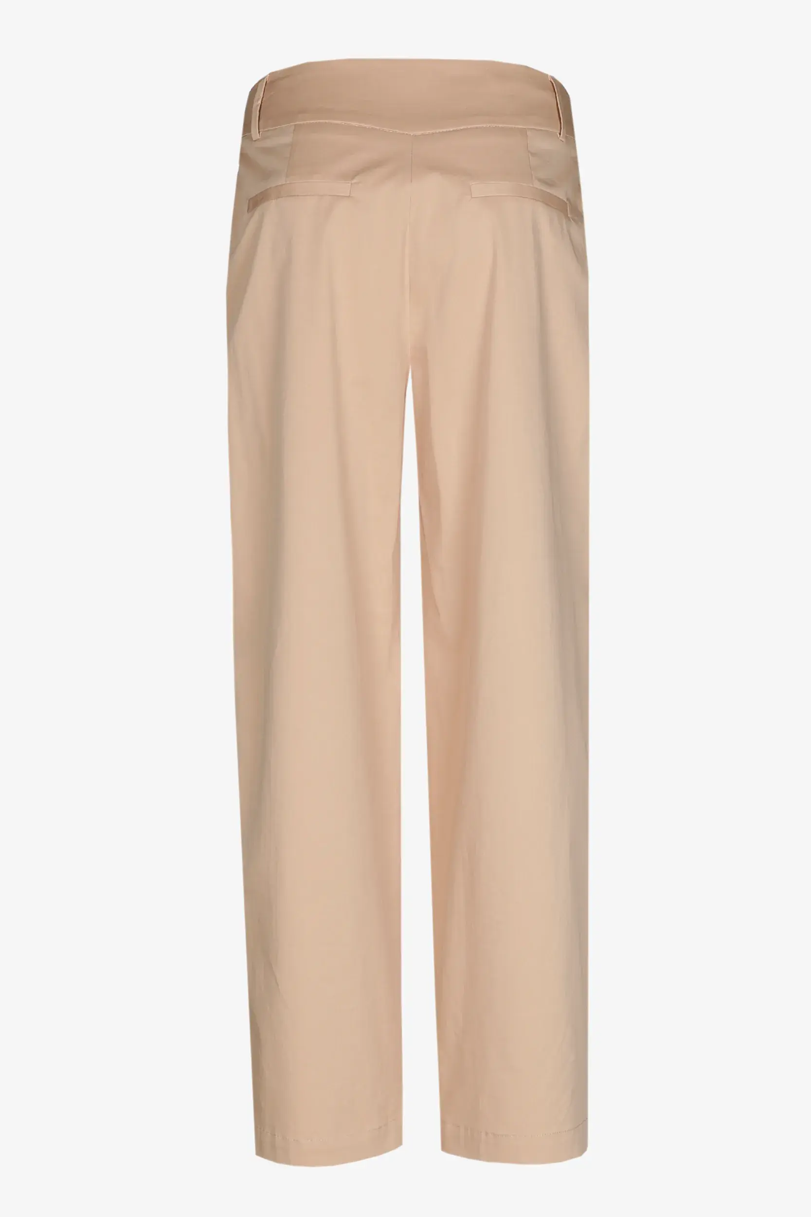Moderne enkellange broek met wijde pijpen en een stijlvolle plooi. Comfortabel en toch chic, een perfecte balans tussen relaxed en verfijnd.