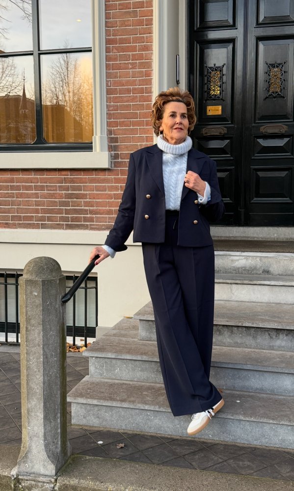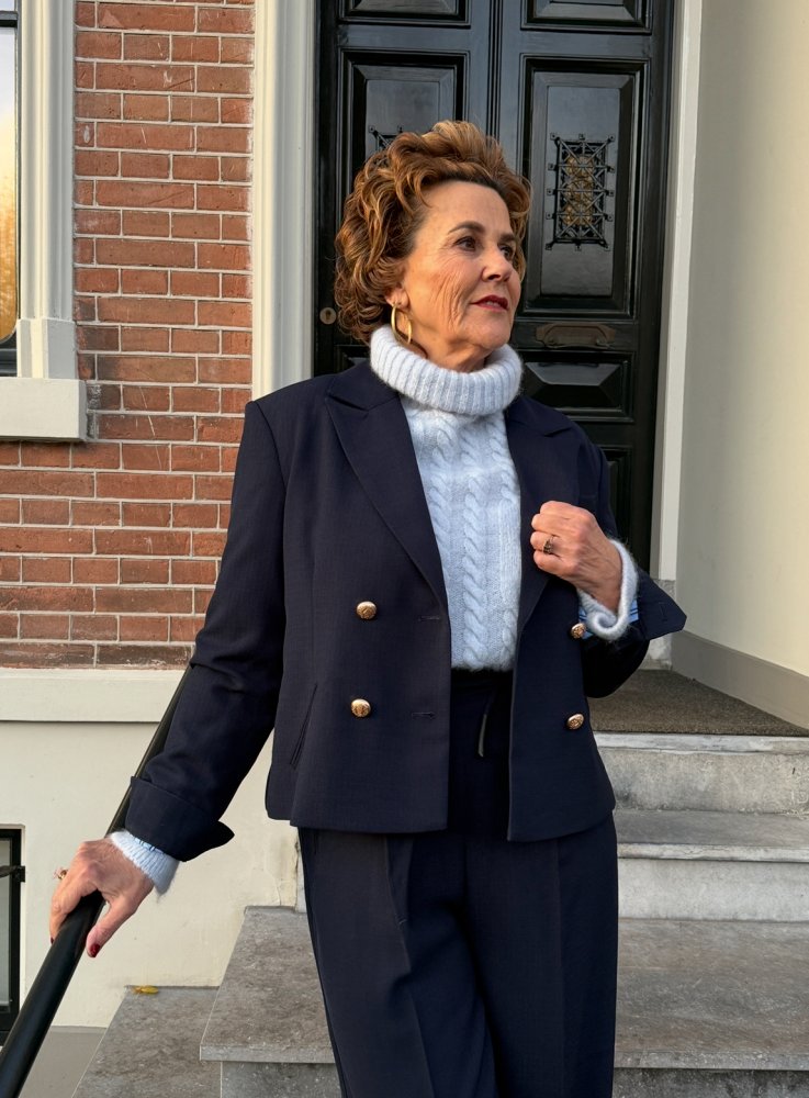 Jack Mika heeft een double-breasted sluiting met gouden knopen. Het taillekoord zorgt voor een gestructureerde fit, en de gestreepte binnenzijde geven het item net dat beetje extra. Draag het jack als co-ord met bijpassende broek Robin.