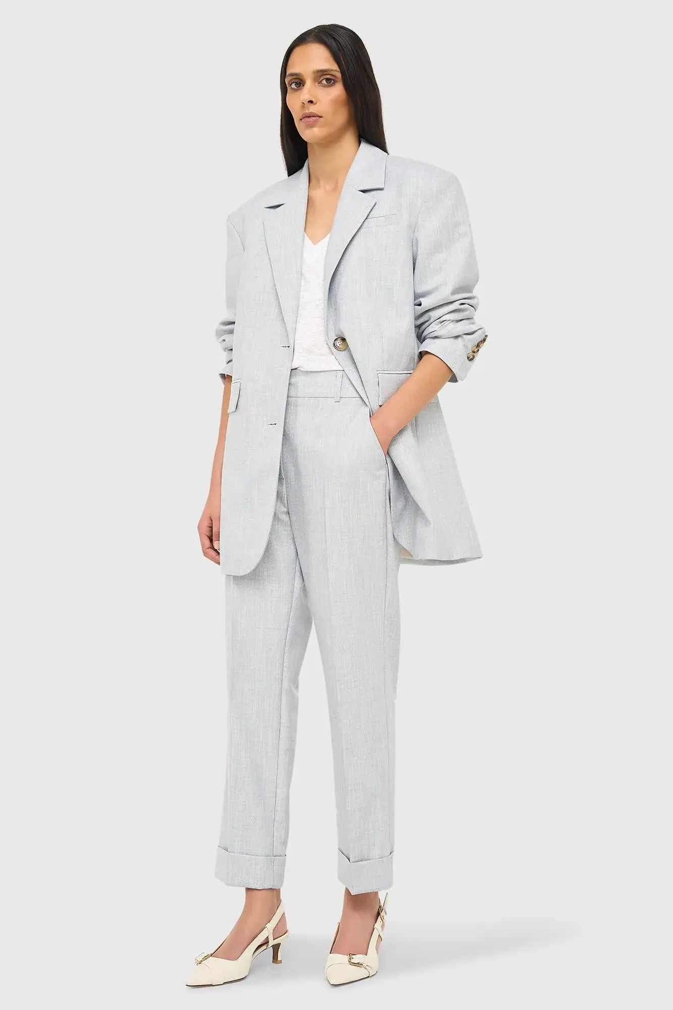 De blauwe tint met lurex geeft een verfijnde twist aan deze klassieker. De combinatie van viscose en elastane zorgt ervoor dat het jasje prettig draagt, terwijl de lurex een subtiele glans toevoegt zonder overheersend te zijn. Dit maakt de blazer geschikt voor zowel dagelijkse looks als meer geklede momenten.