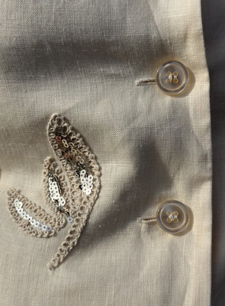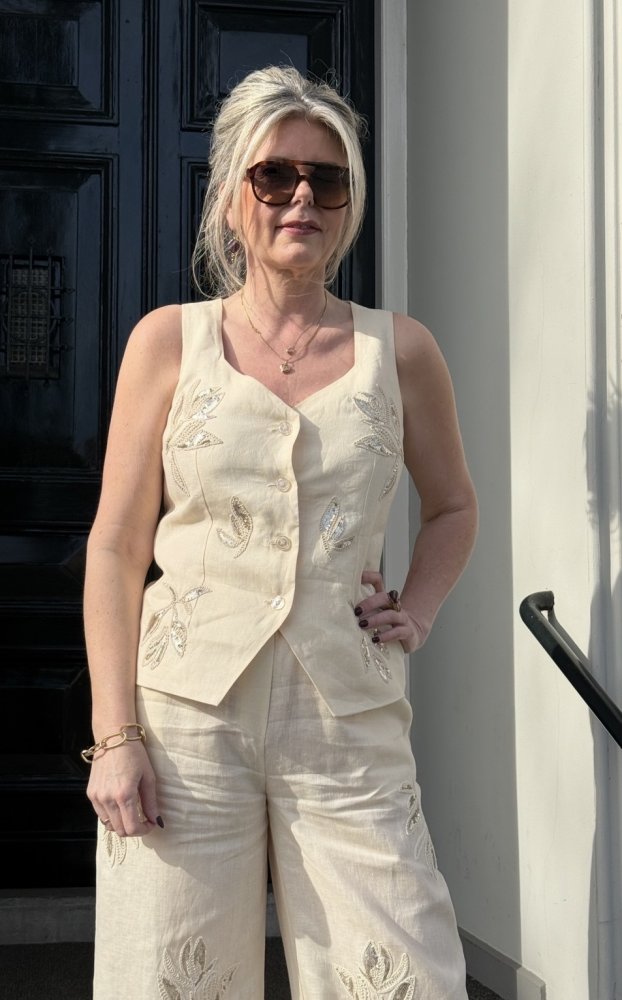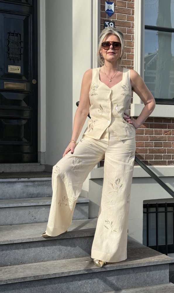 Icona ecru linnen gilet dames 100% linnen | luxe gilet met pailletten detail