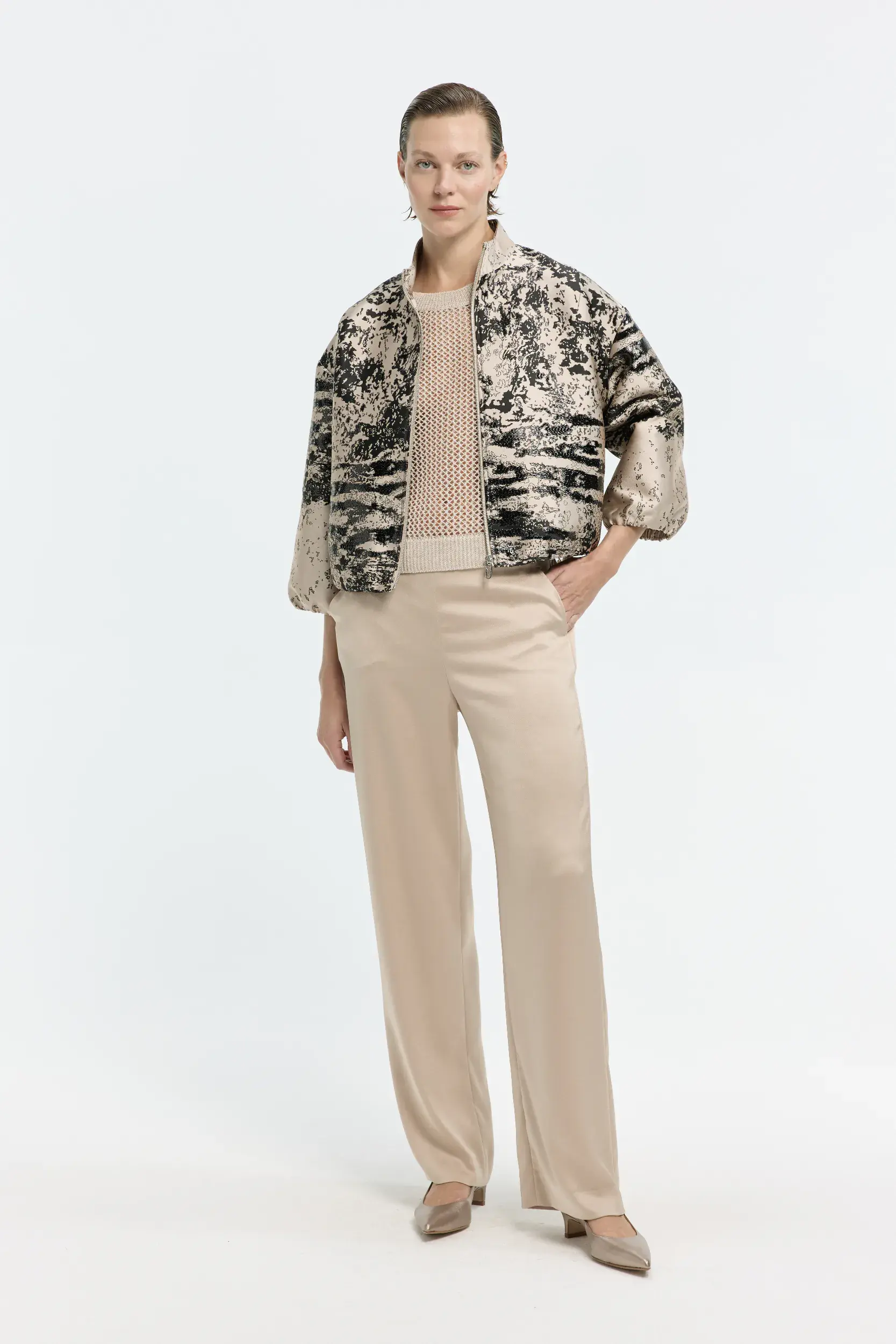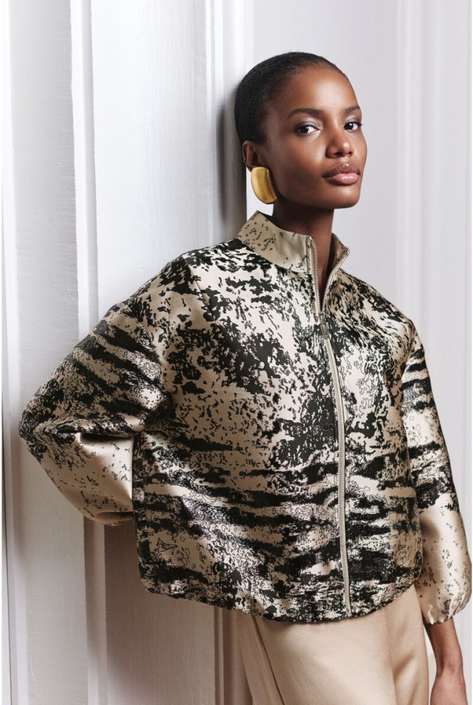 Voor SS26 presenteert Xandres Iconic een collectie voor gelegenheden die zich uitstrekken van dag naar avond. Zwarte raffia, glanzend champagne jacquard, een grafisch patroon – transparantie, textuur en gelaagdheid voelen uitgesproken aan, maar blijven draagbaar en verrassend veelzijdig. Ideaal voor wie een zomerse feestlook zoekt met karakter.