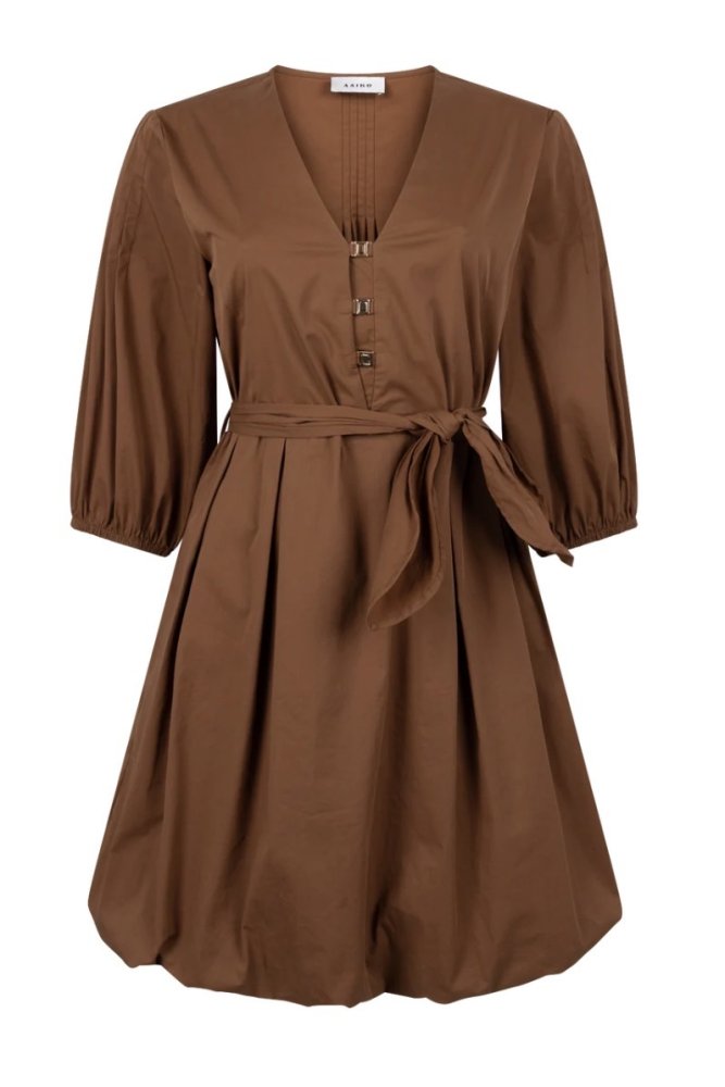 Aaiko Isolde jurk bruin 101446-181031 | elegante korte jurk met ceintuur