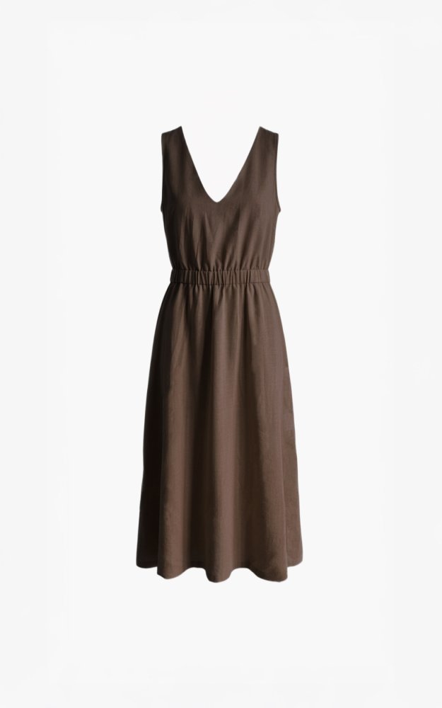 De Aimée The Label MelinaHS Dress is een elegante lange dames jurk in een warme bruine tint die moeiteloos comfort en stijl samenbrengt. De luchtige stof met een mix van polyester, tencel en linnen zorgt voor een soepel vallend silhouet dat prachtig met je meebeweegt.