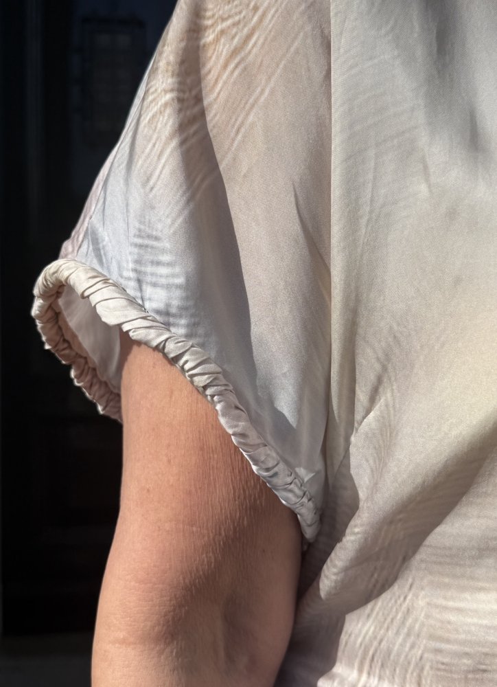 De combinatie van viscose en cupro maakt de stof zijdezacht, licht en ademend – perfect voor warme dagen, maar ook prachtig door te dragen naar een diner of gelegenheid.