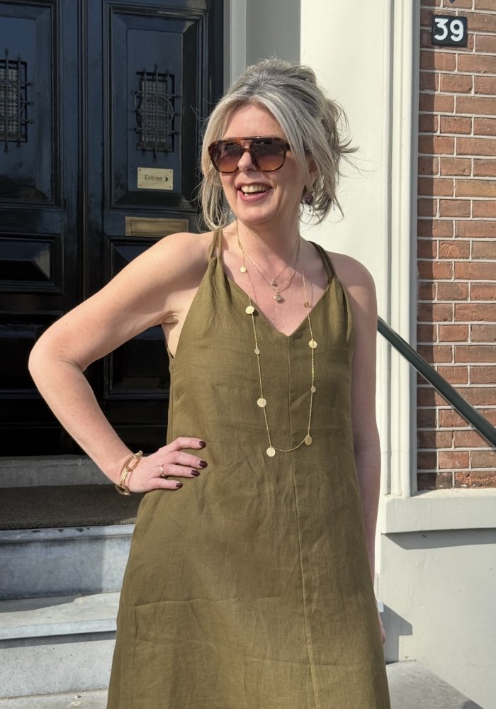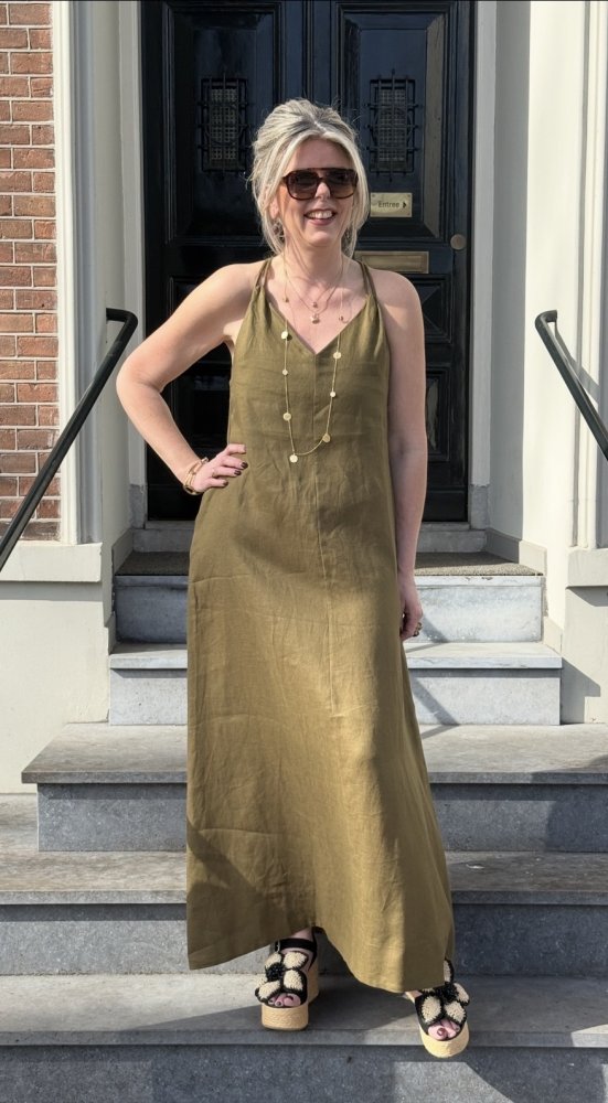 Icona mouwloze linnen jurk – tijdloos in olijfgroen