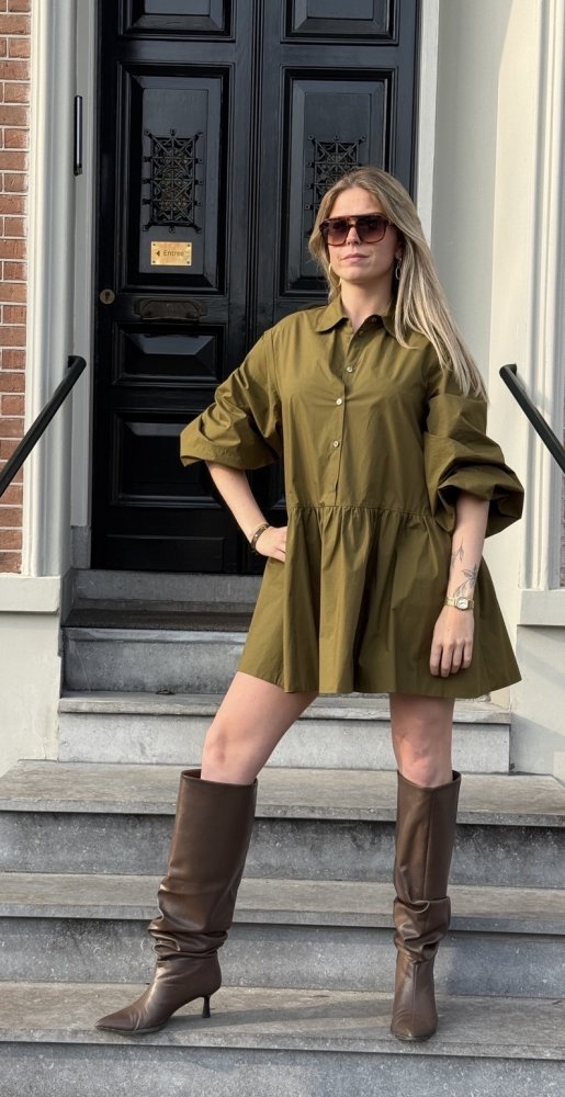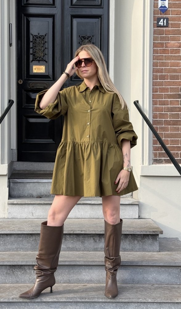 Katoenen korte jurk Olijfgroen – Icona SP5LE026