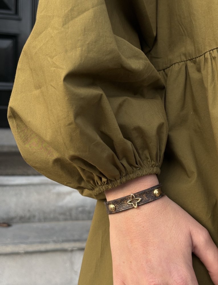 De jurk heeft lange mouwen met elastiek in de manchetten, waardoor je de mouwen ook mooi kunt blousen voor een nonchalante, vrouwelijke uitstraling. Dit geeft de jurk net dat speelse detail waardoor hij zowel casual als iets gekleder te dragen is.